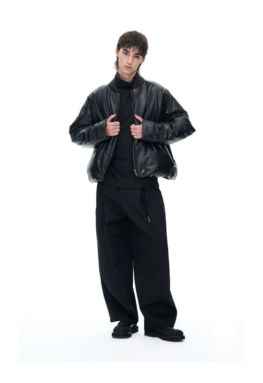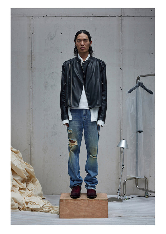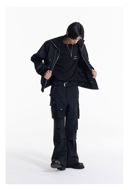 Double Zipper Stand Collar PU Leather Jacket