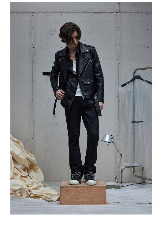 Multi-Zipper PU Leather Fitted Jacket