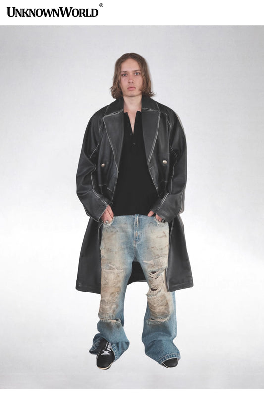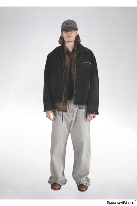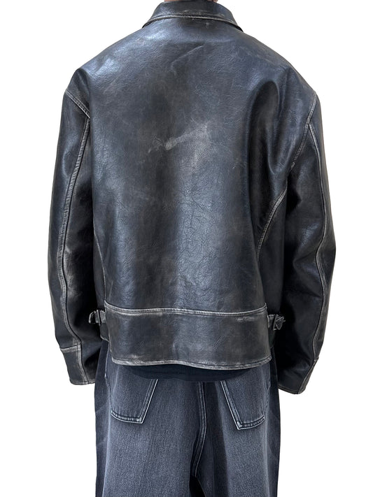Heavy Duty Damaged Elastic Hem Padded Leather Jacket