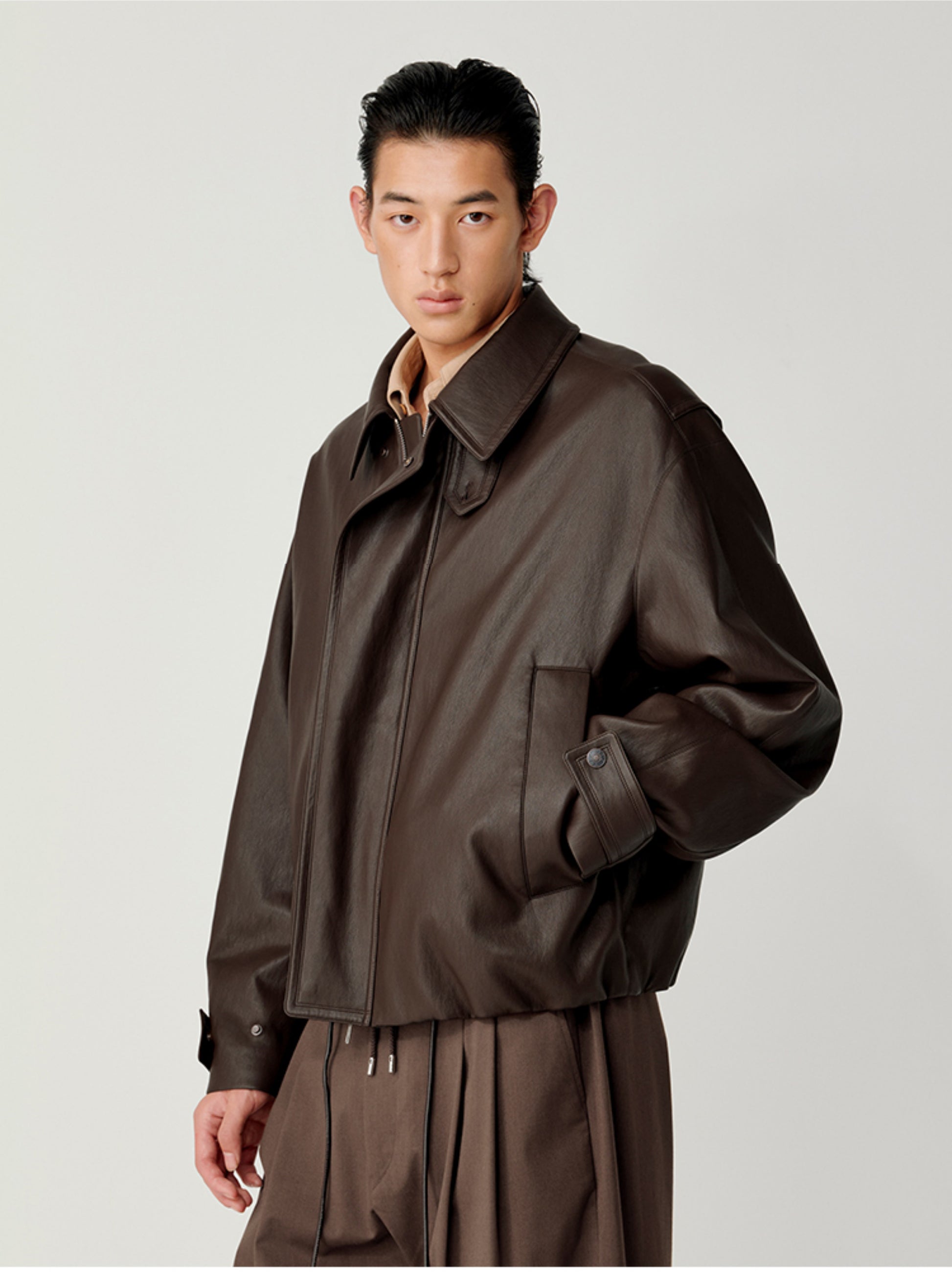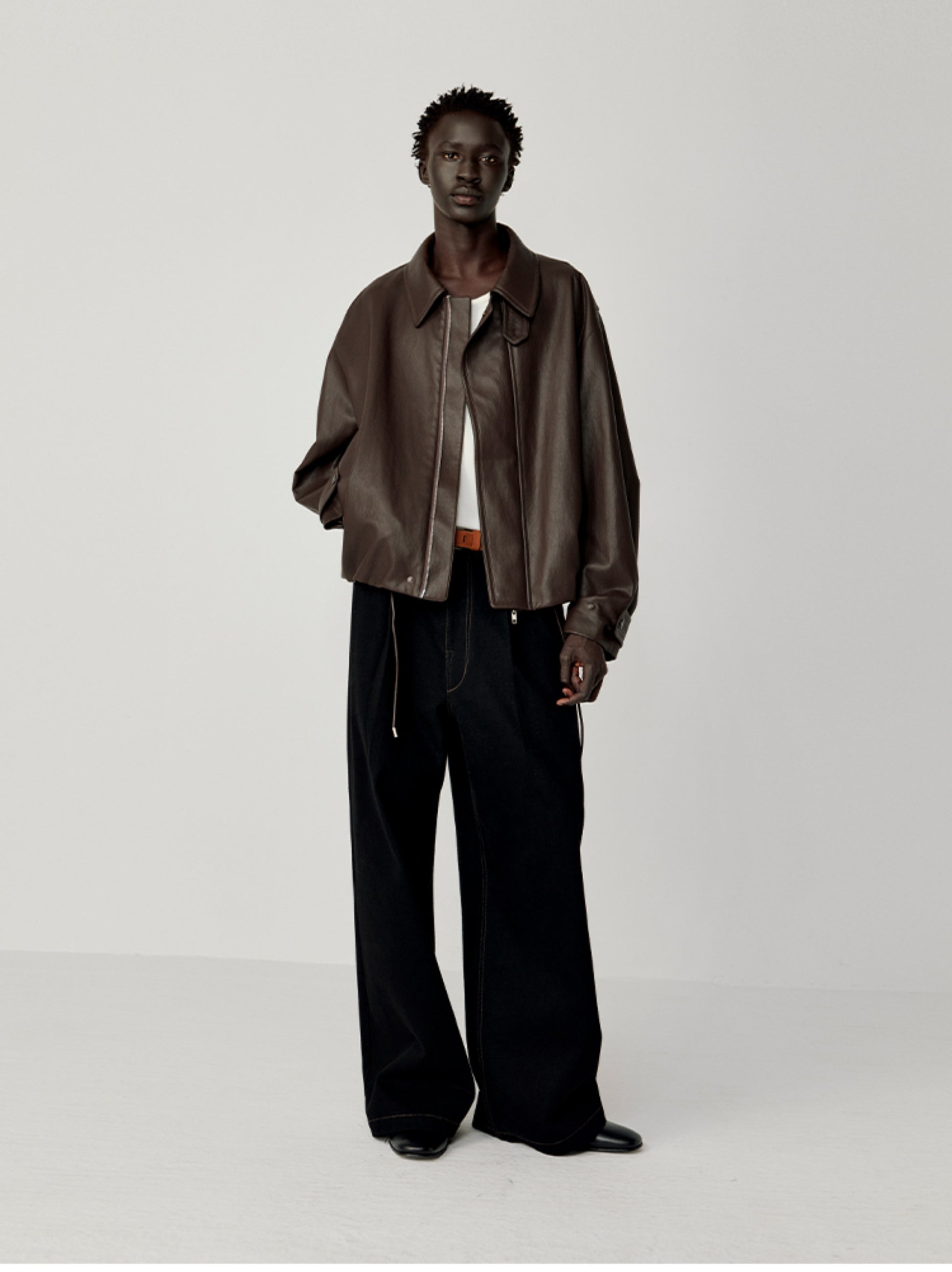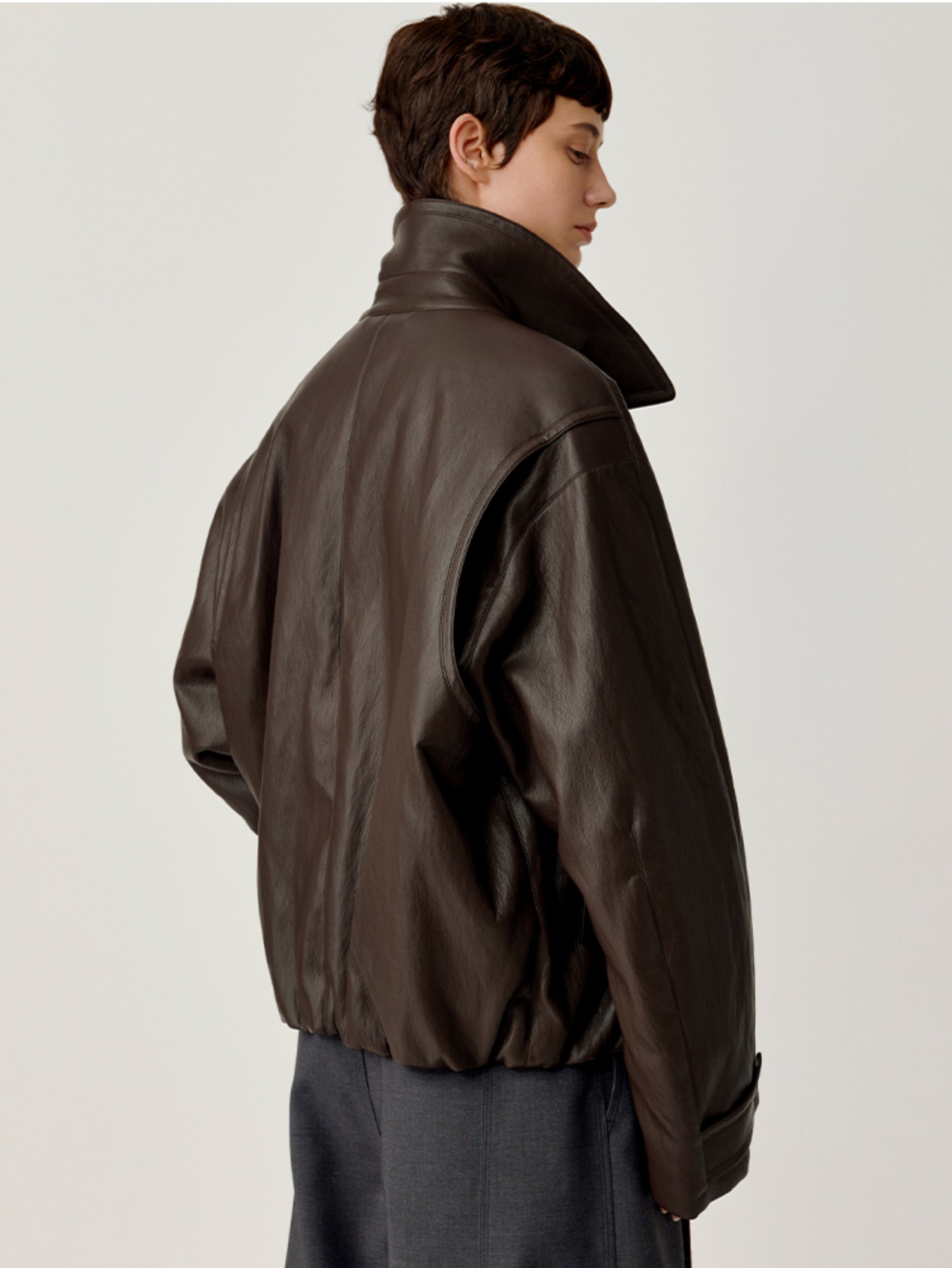 Accordion-Pleated Leather Jacket