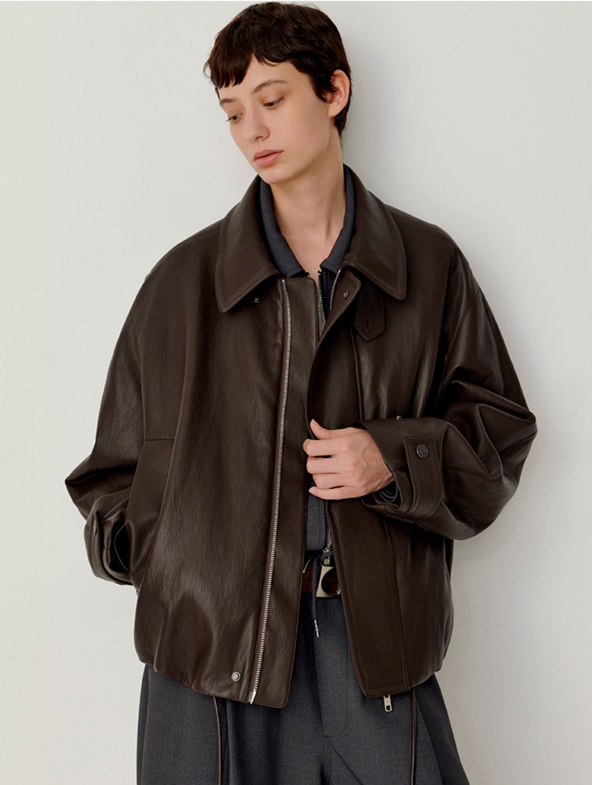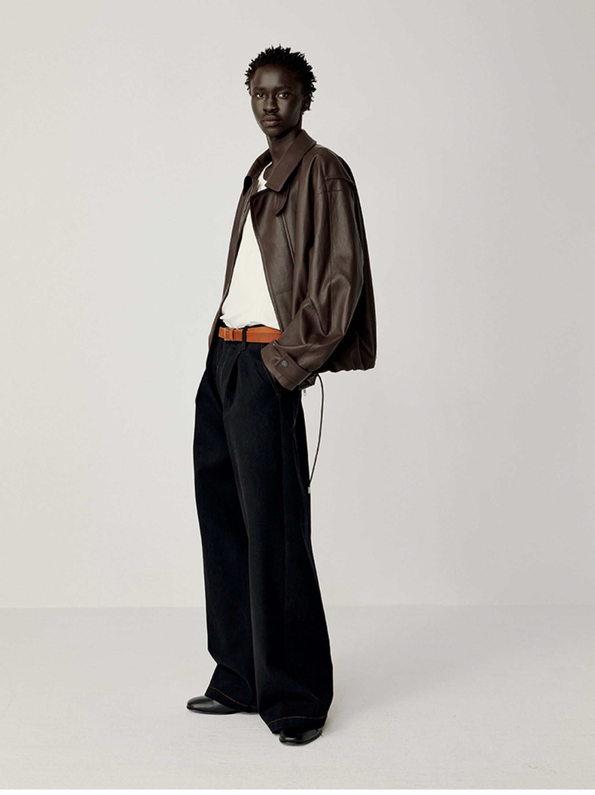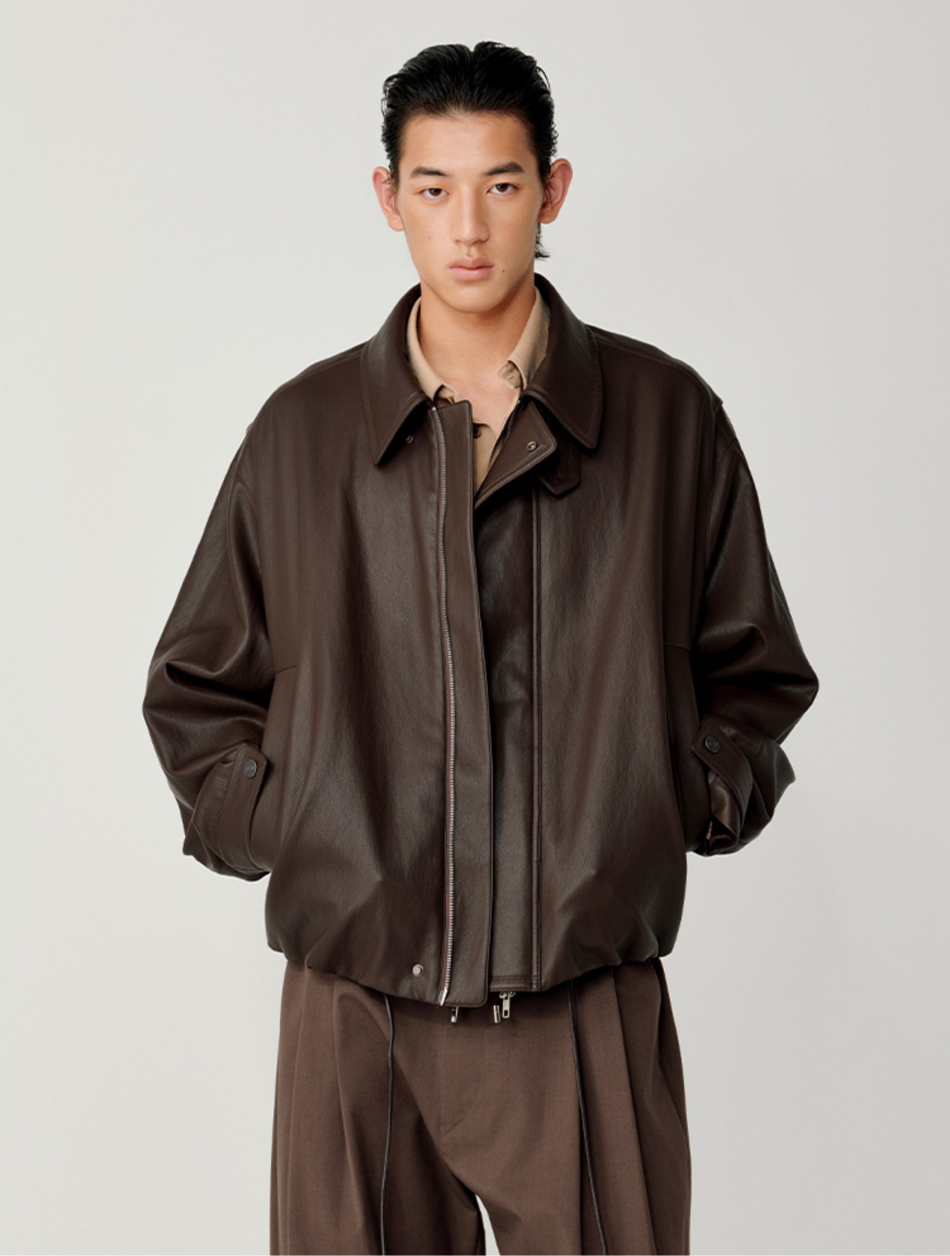 Accordion-Pleated Leather Jacket