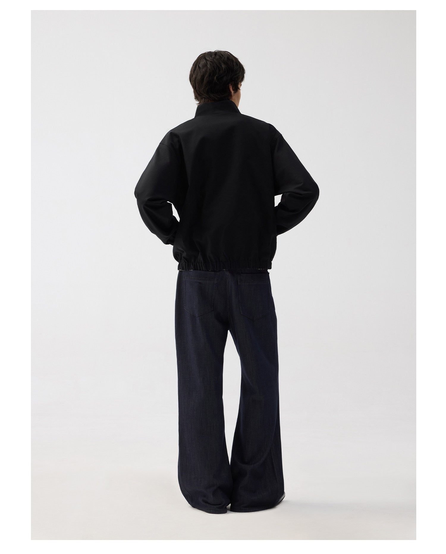 Linen-Blend Color-Block Stand Collar Jacket