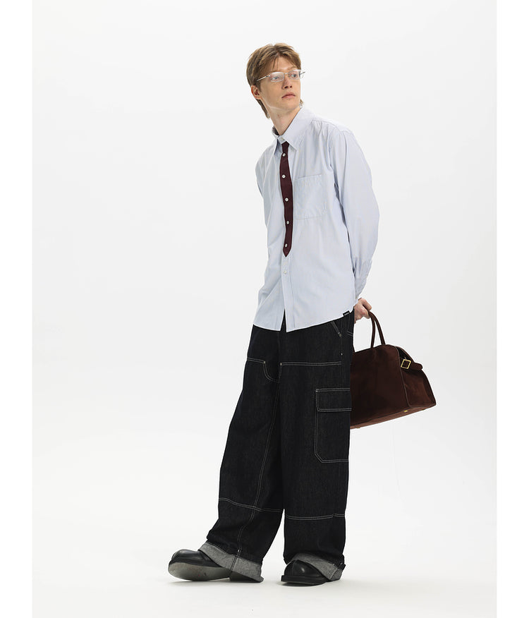Striped Faux Tie Casual Shirt