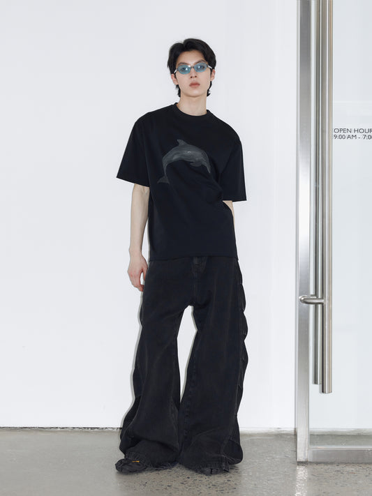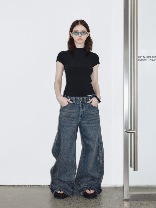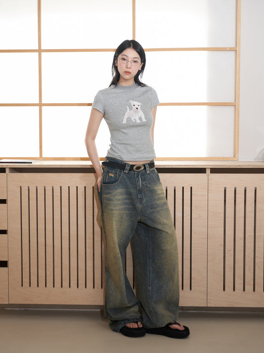 Unisex Washed Damaged Baggy Silhouette Denim Pants