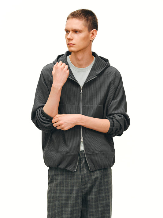 Waffle Chain Zipper Hoodie