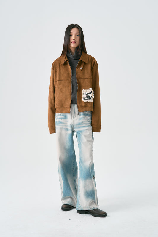 Washed Short Wide Denim Jacket