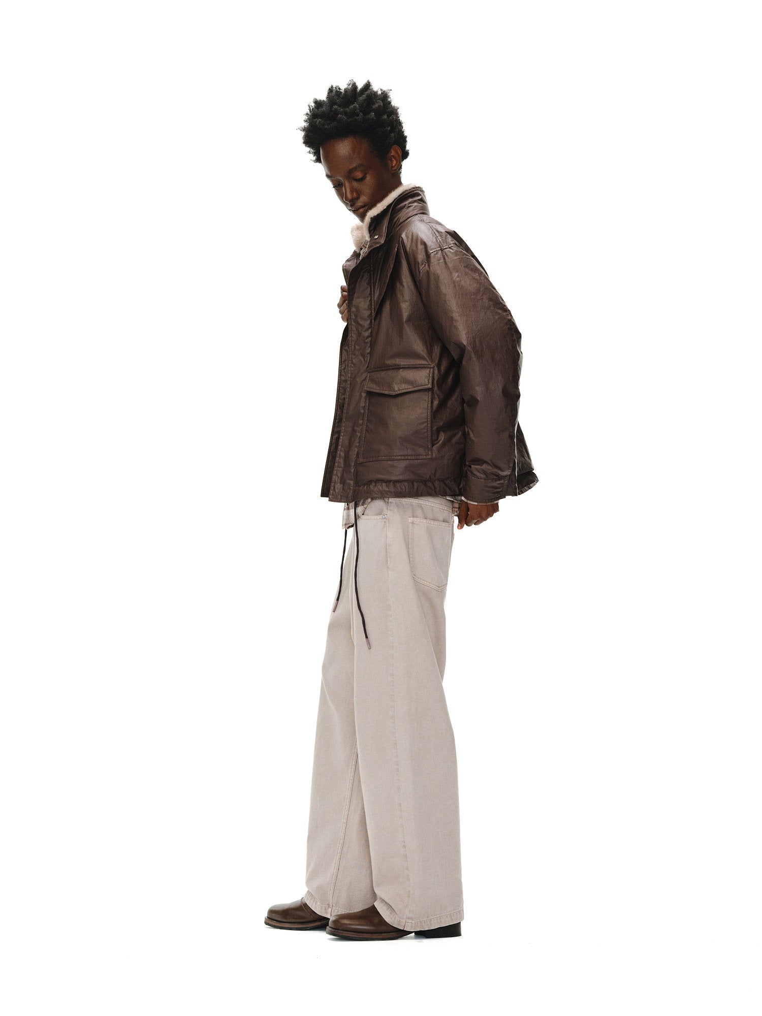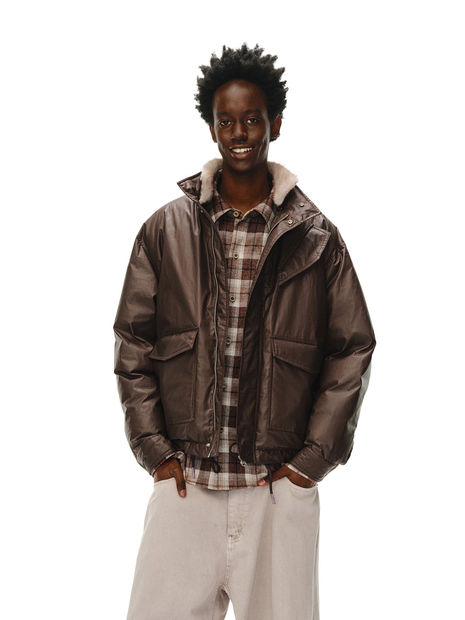 Coated Fur Collar Jacket
