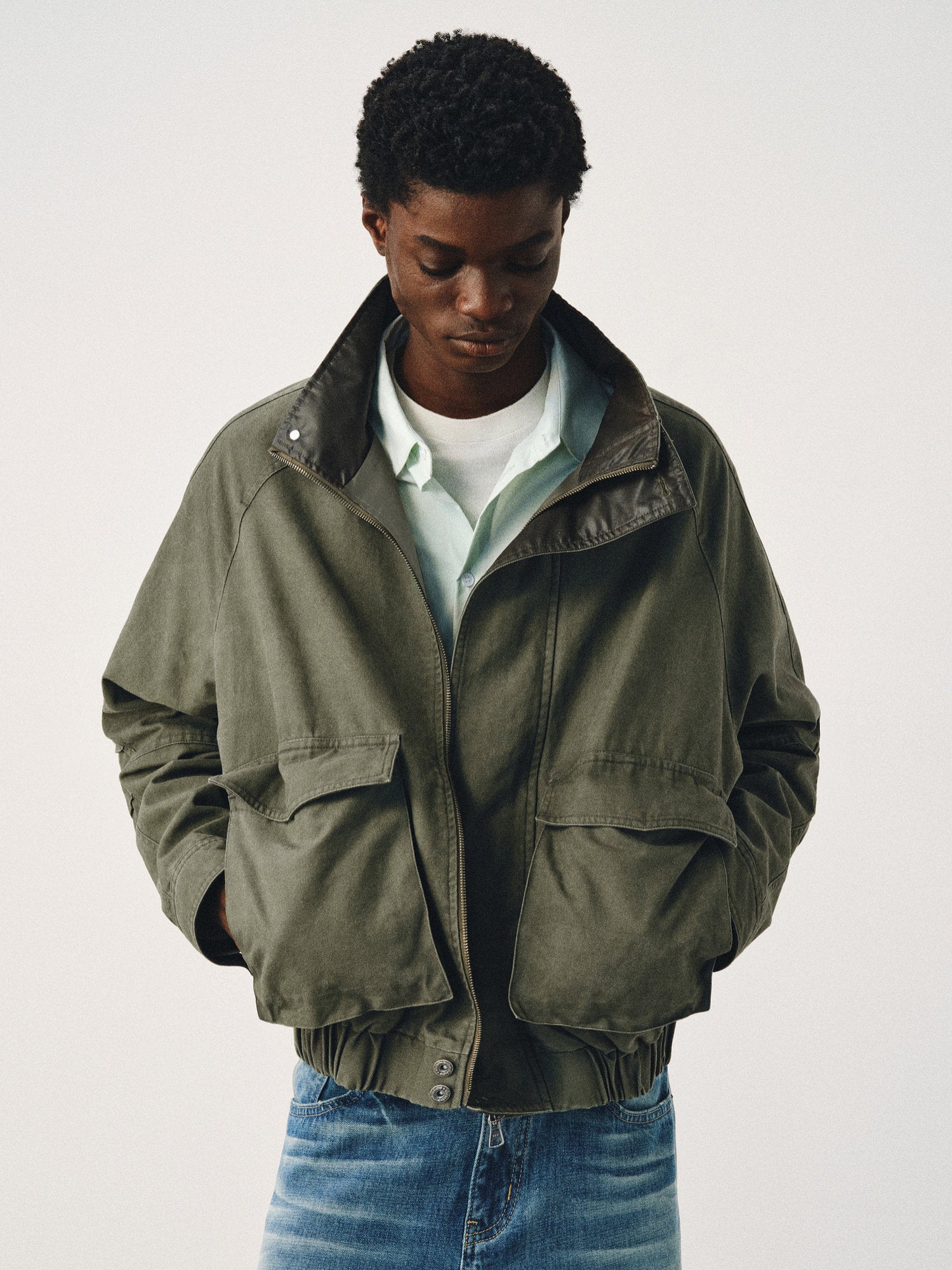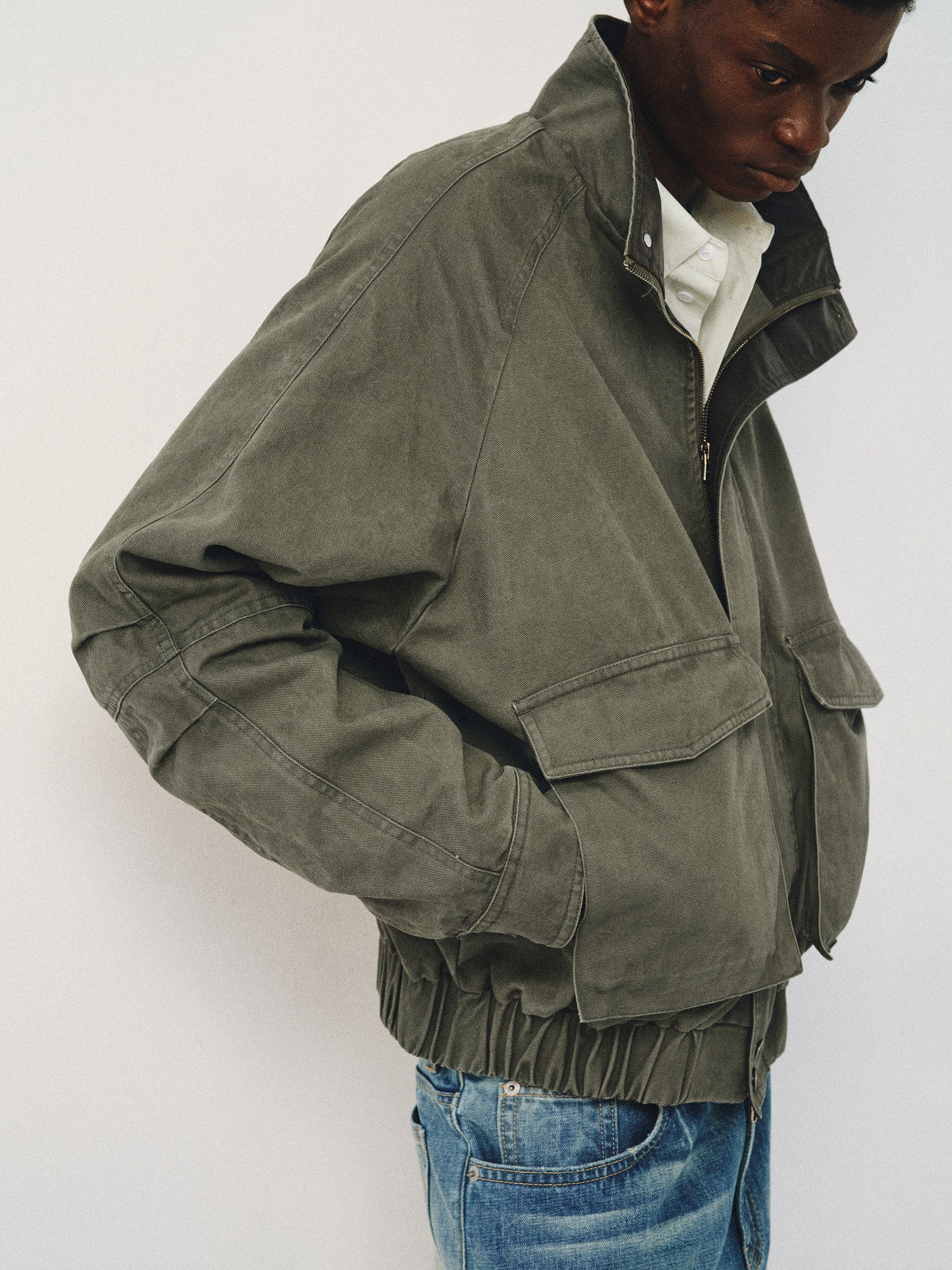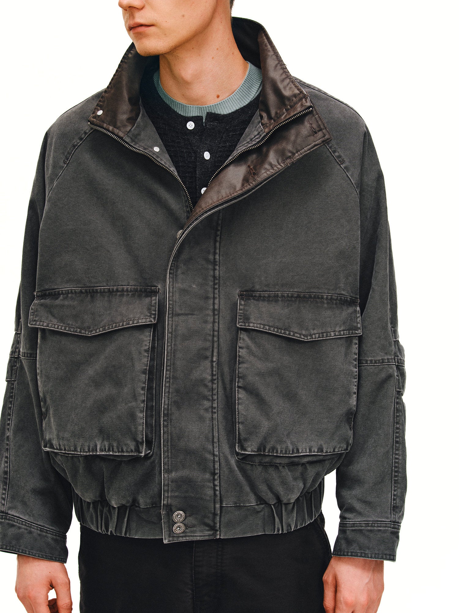 Distressed Stand Collar Jacket