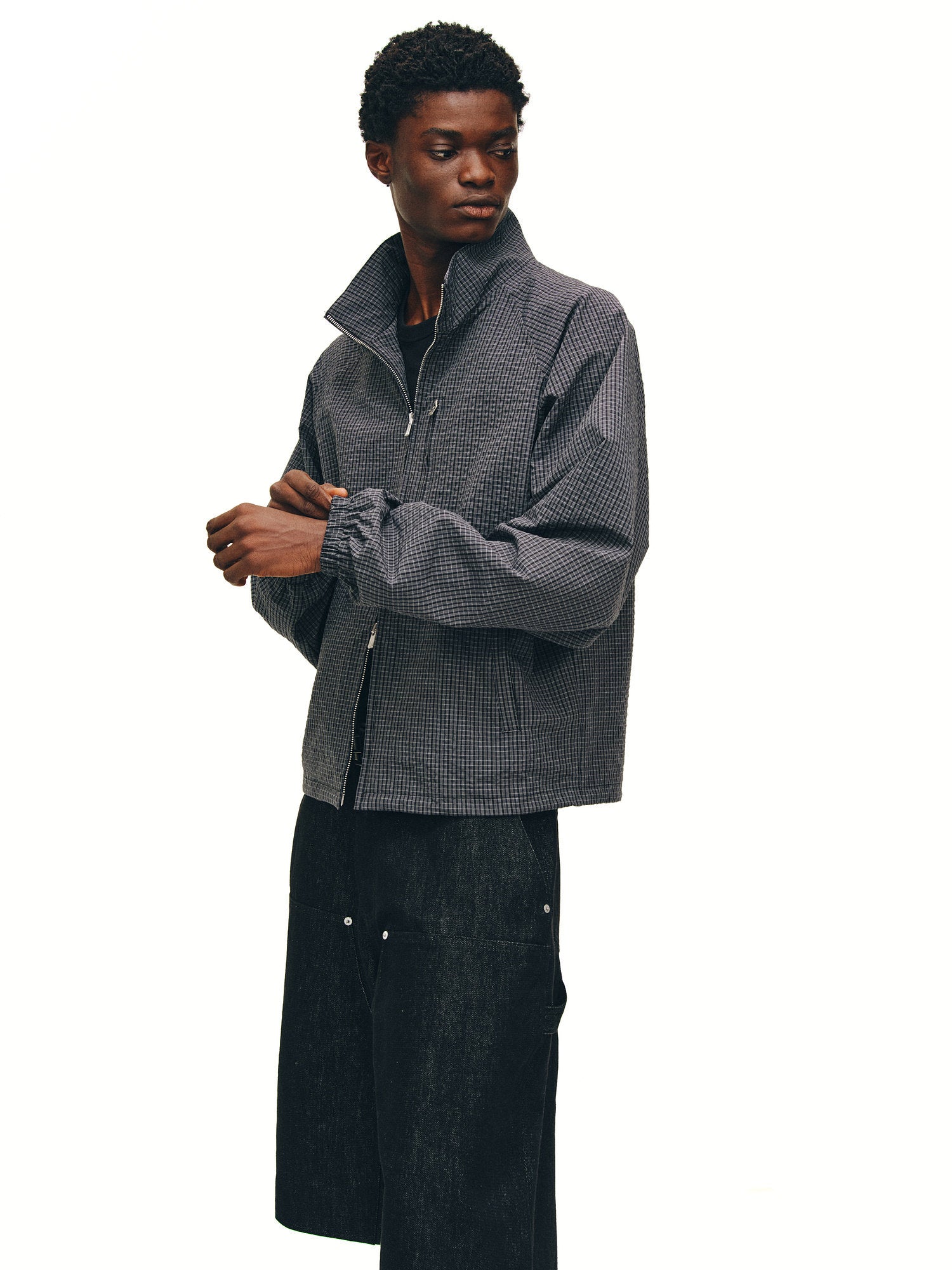 Seersucker Check Zip-Up Jacket