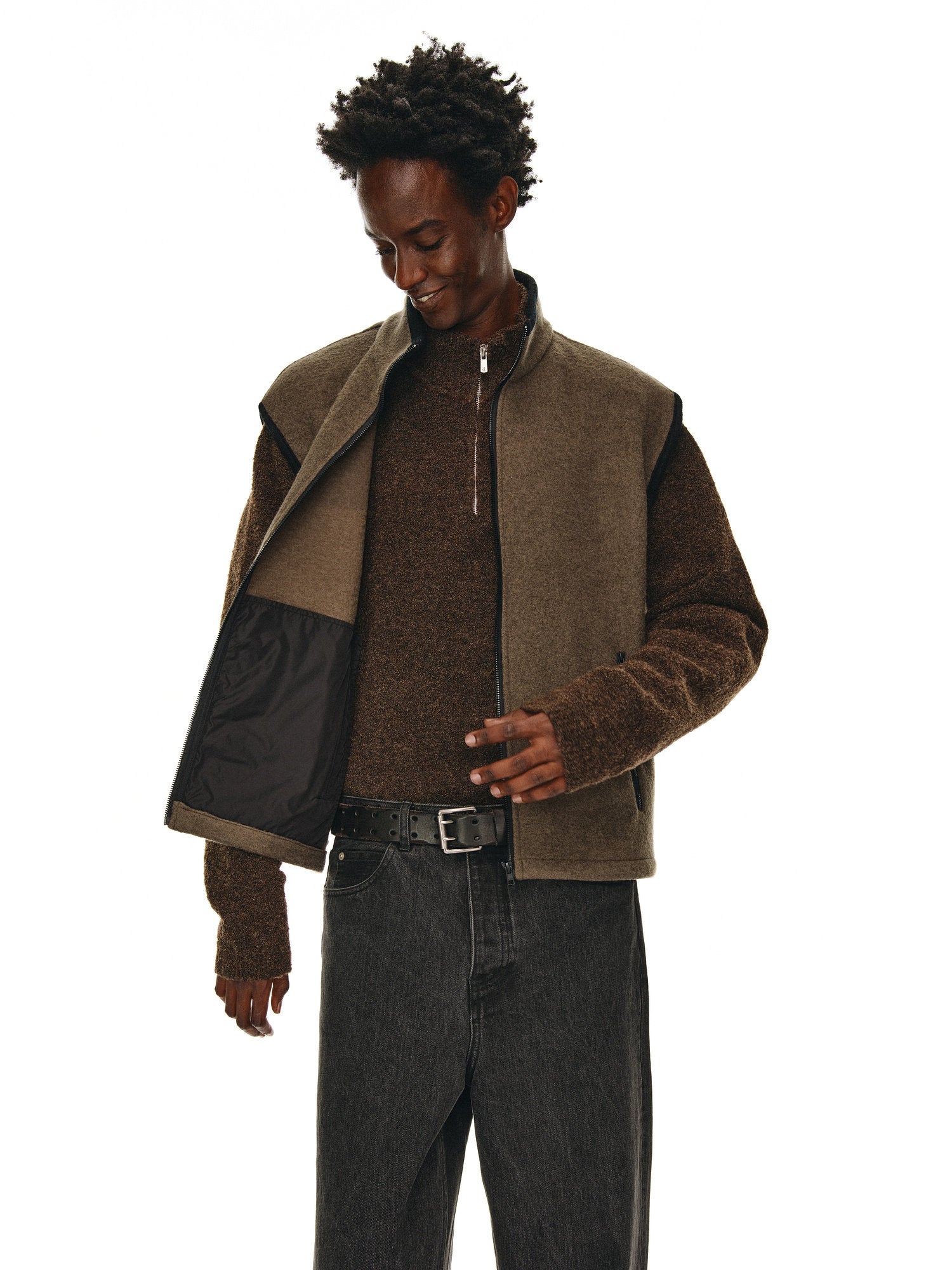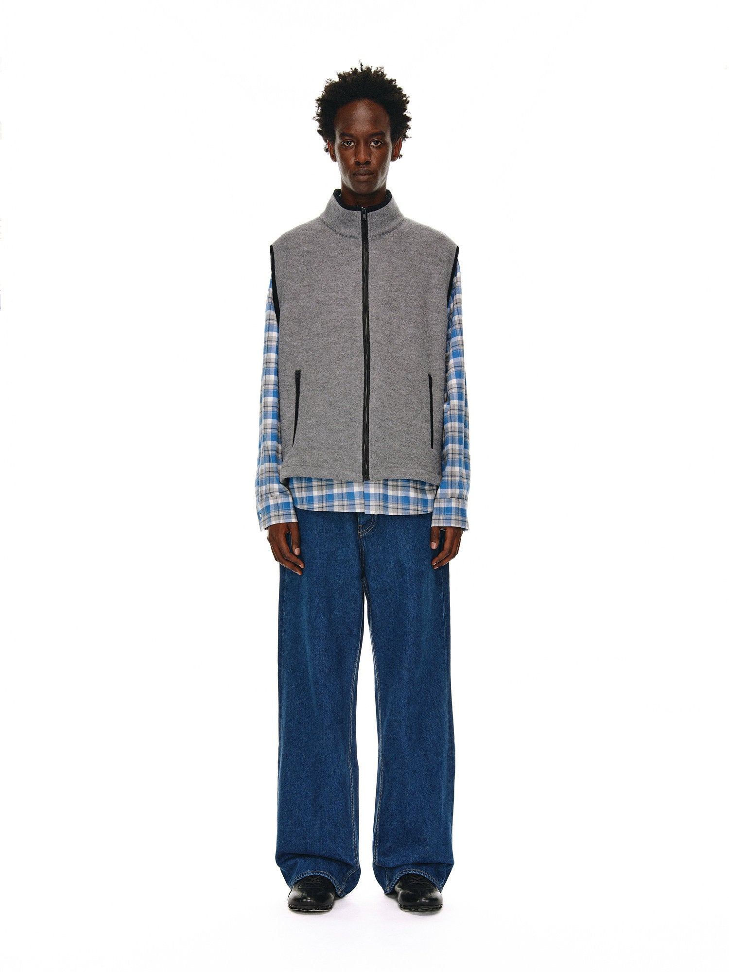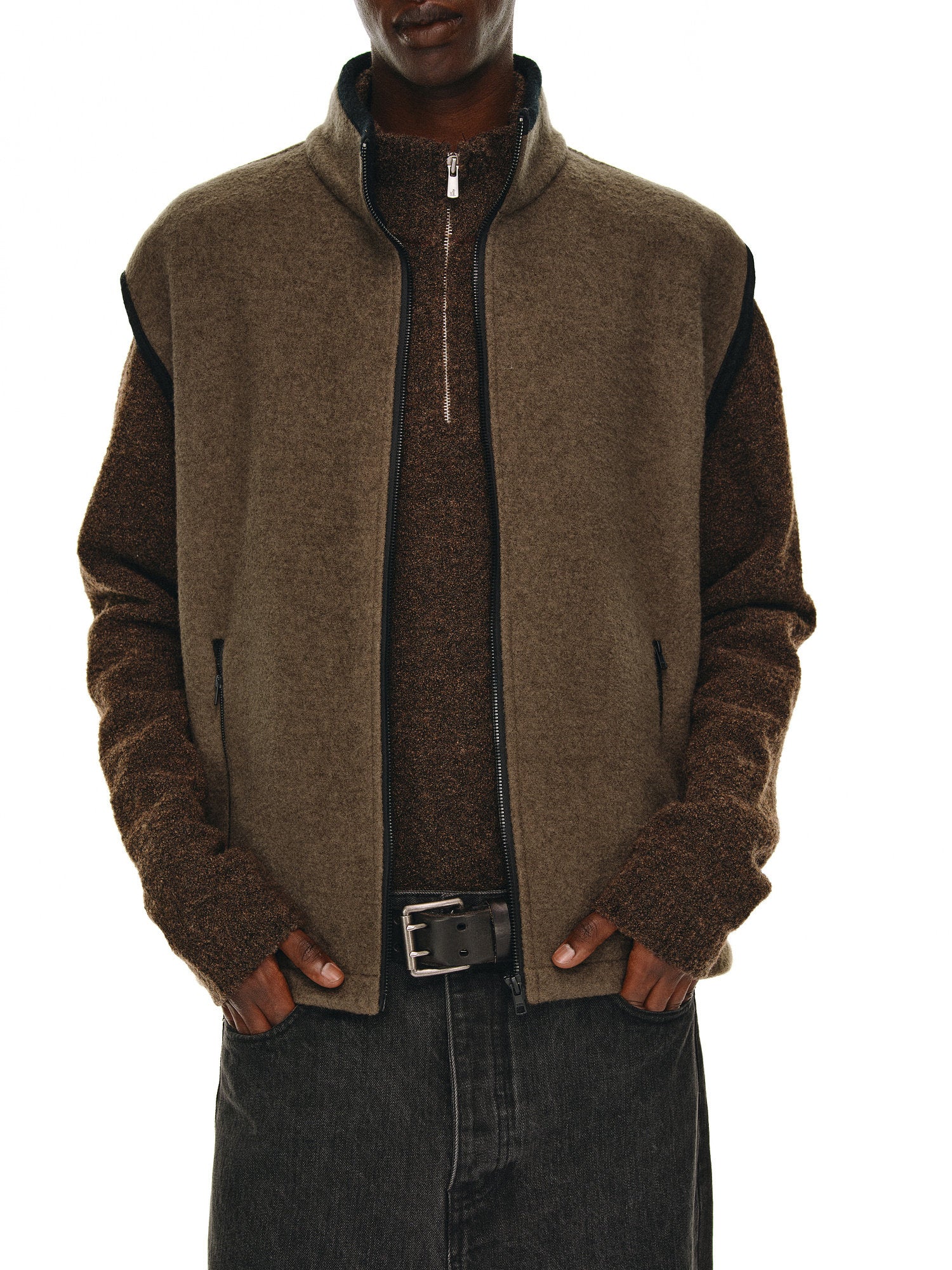 Wool Zipper Stand Collar Vest