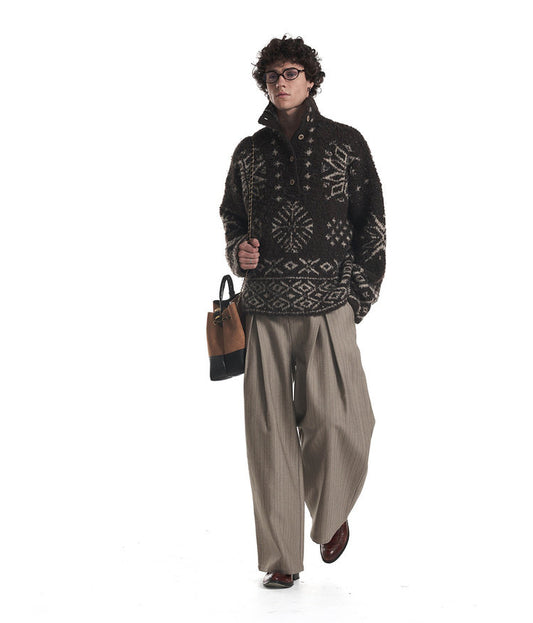 Loose-Fit High-Neck Knit Sweater