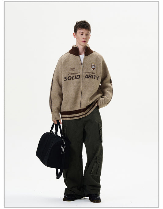 Jacquard Zipper Cardigan