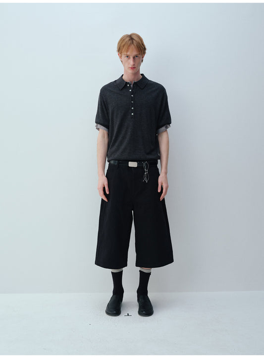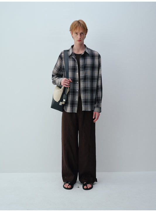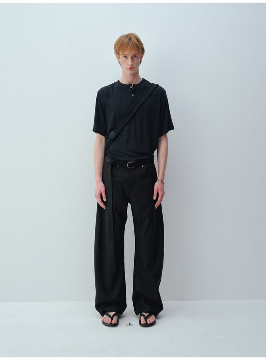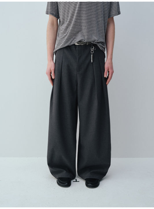 더블 플리츠 울 블렌드 캐주얼 팬츠