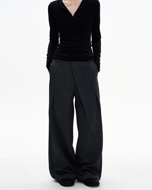 Diagonal-Pocket Relaxed Fit Casual Pants
