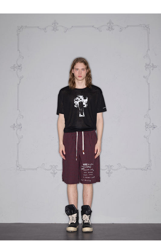 Embroidered checkered shorts