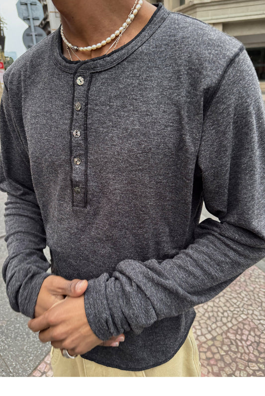 광택 단추가 달린 티셔츠