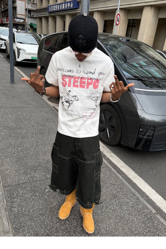 그래피티 프린트 크루넥 티셔츠