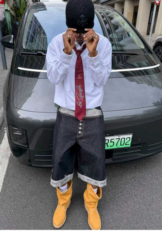 Button-down denim shorts