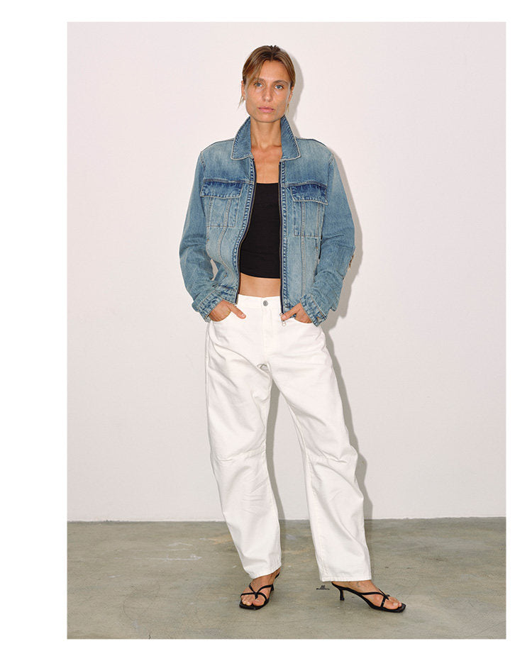 Double Zip Wash Denim Jacket