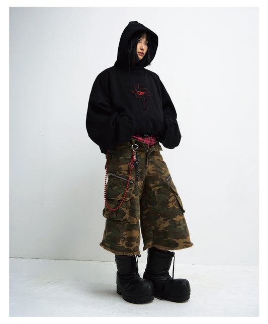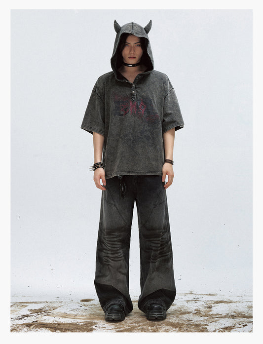 Damaged short-sleeved T-shirt with hood