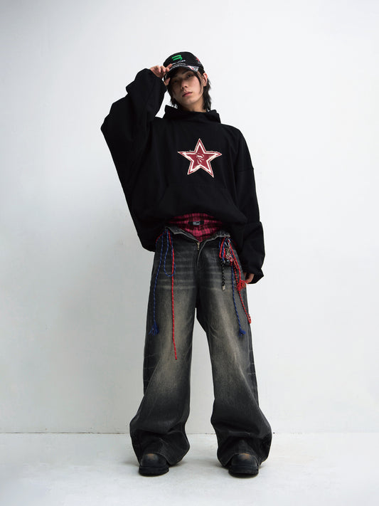 Mud-dyed wide-leg straight jeans