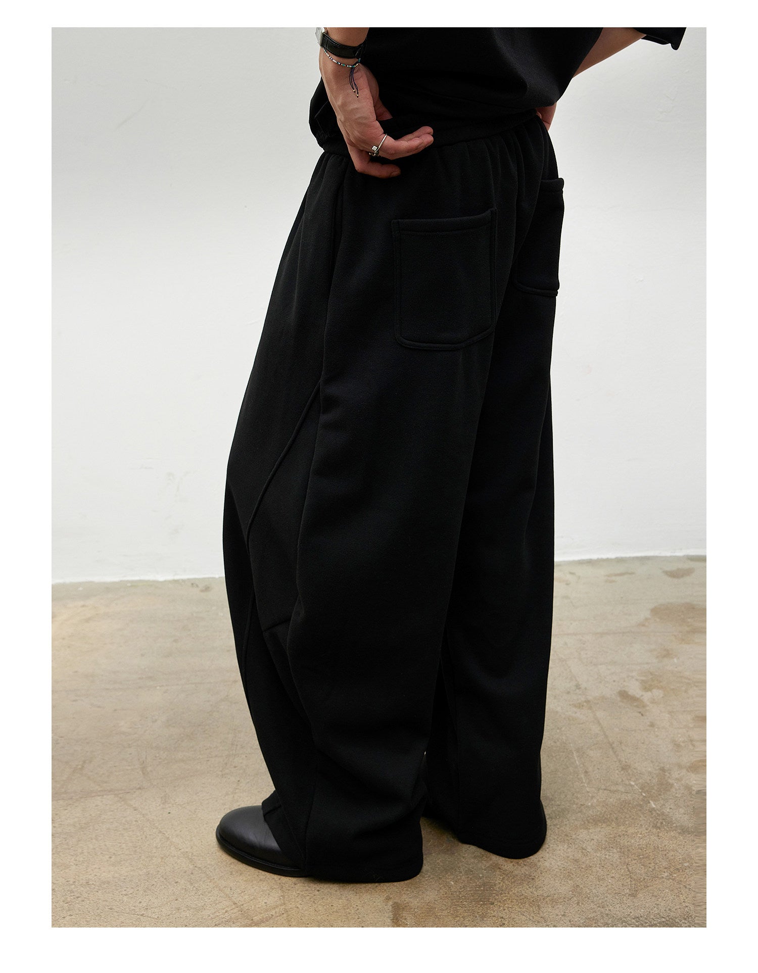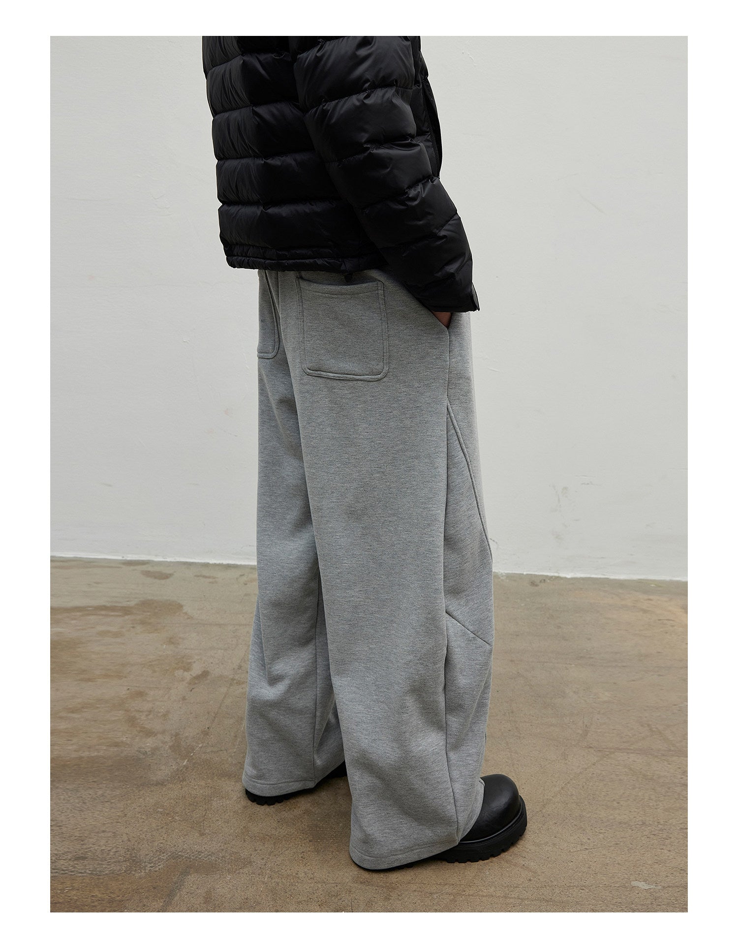 Curved Slit Sweatpants with Brushed Lining