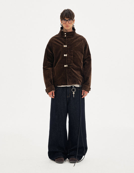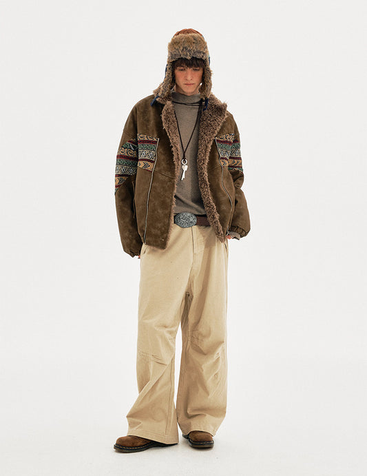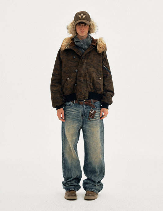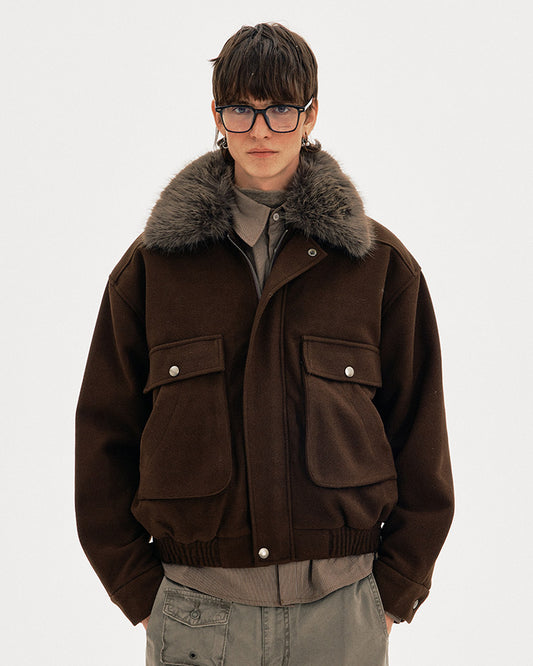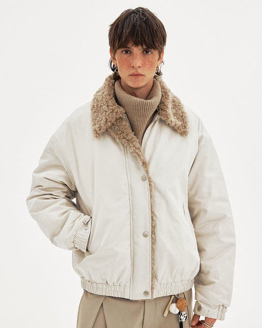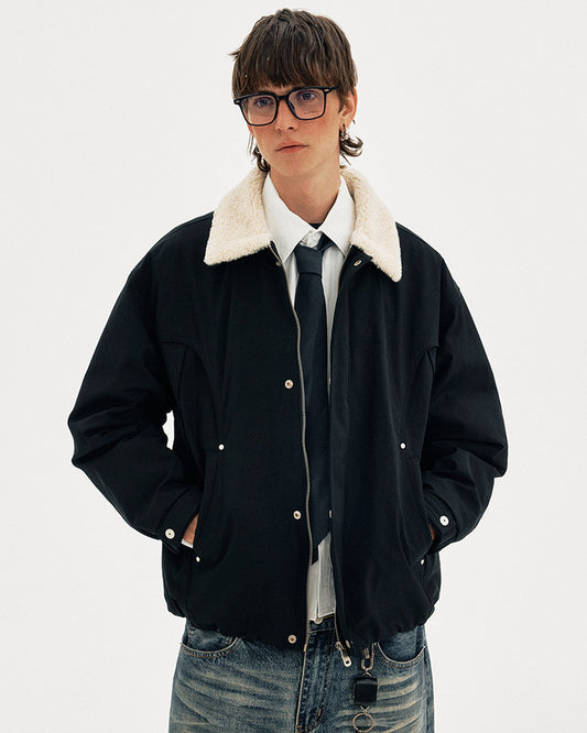 Diagonal Zipper Lambswool Collar Cotton Jacket