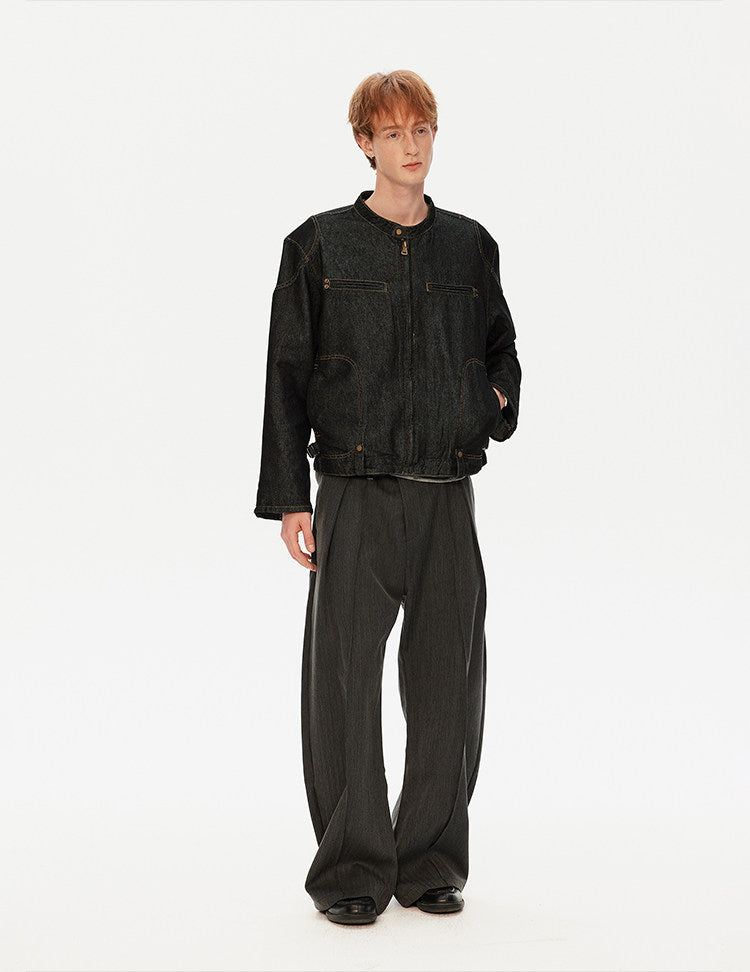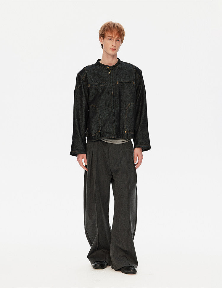 패디드 숄더 데님 재킷