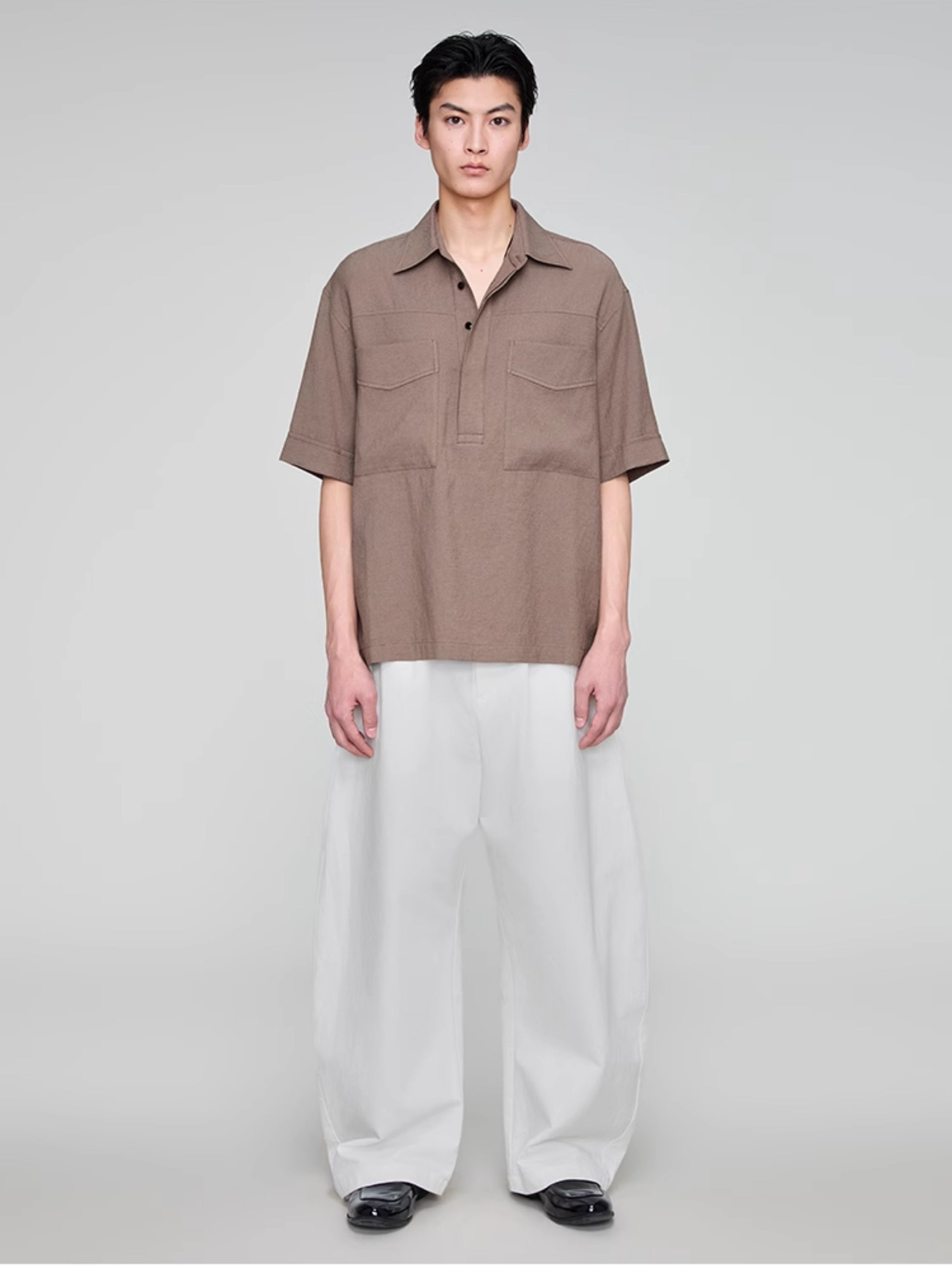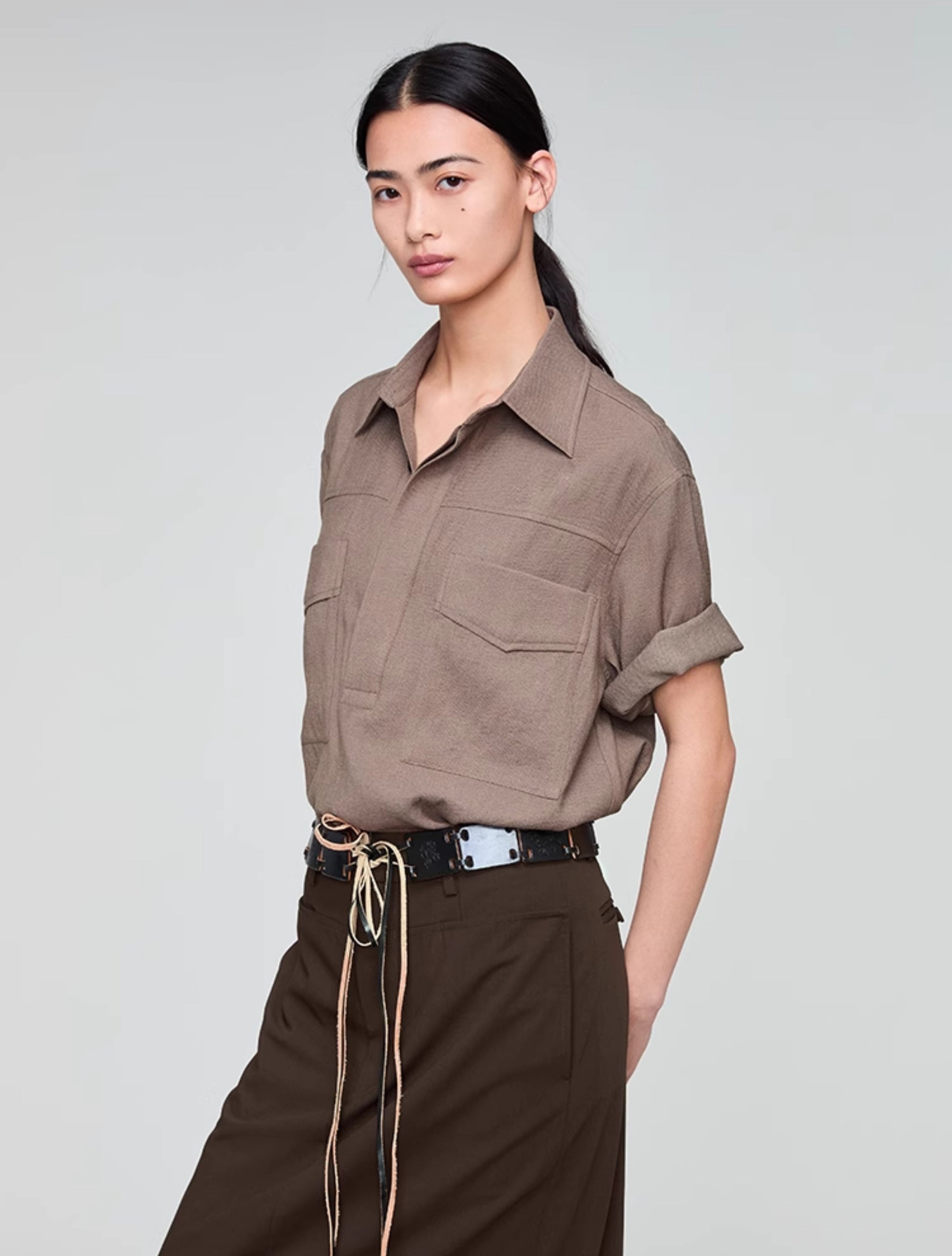 Retro Lapel Draped Casual Shirt