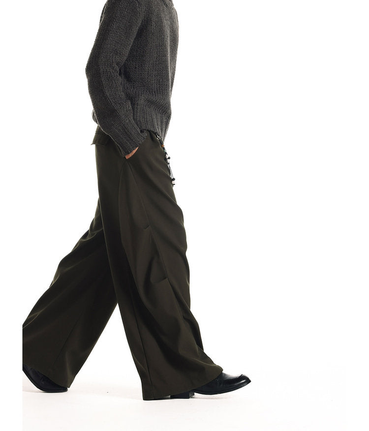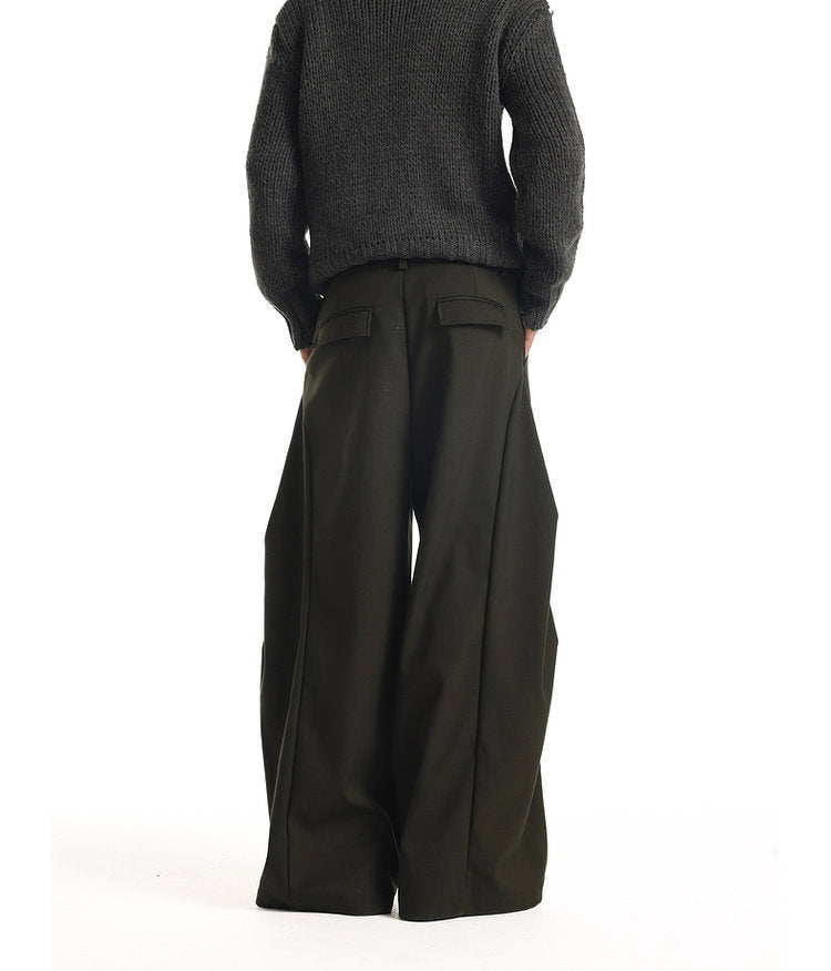 Wide-Leg 3D Pleated Casual Pants