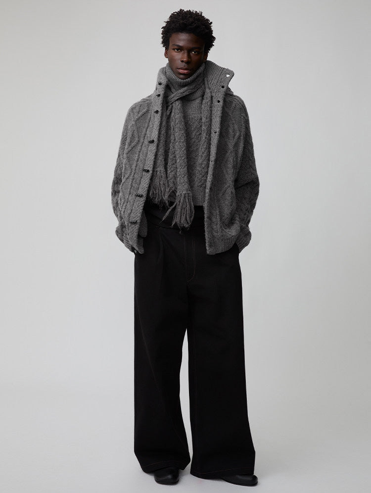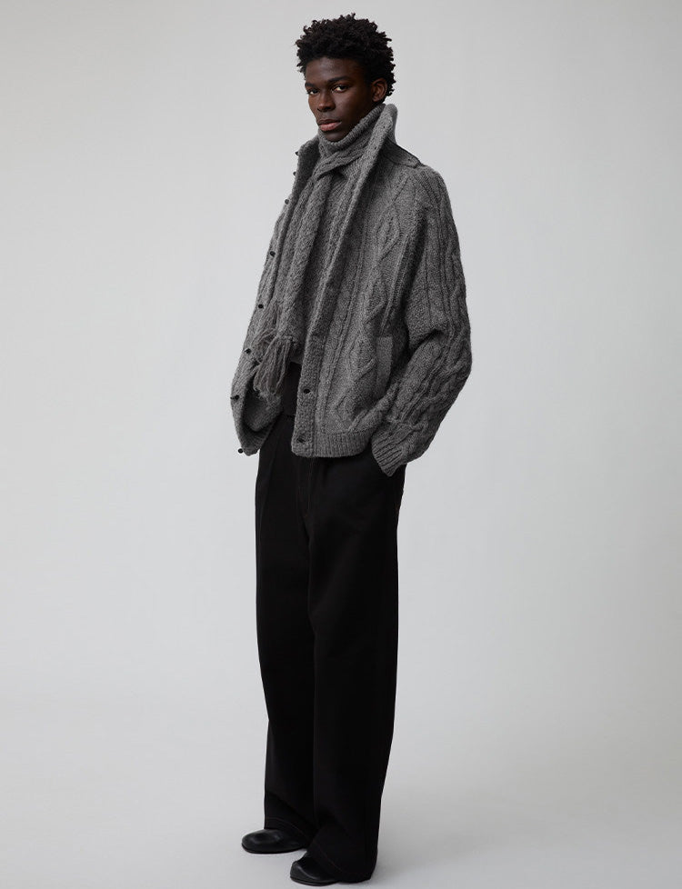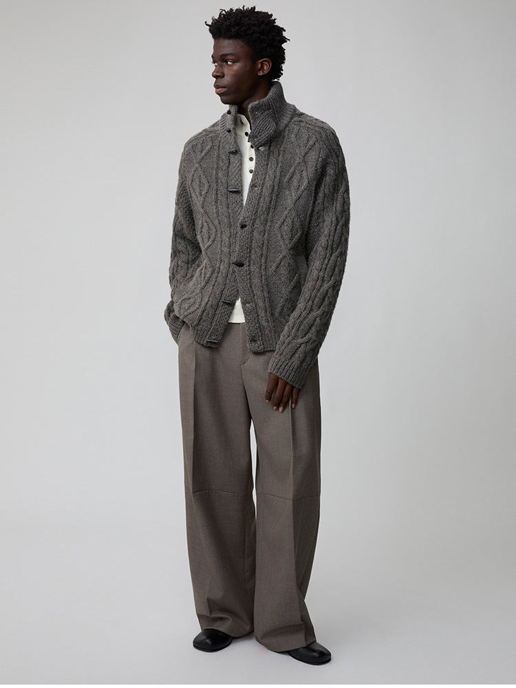 Wool-Blend Cable-Knit Cardigan