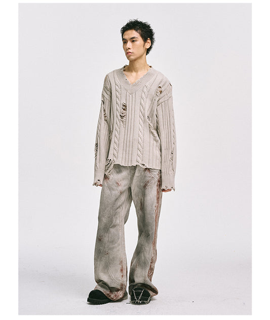 Niche Design Damaged Straight Jeans