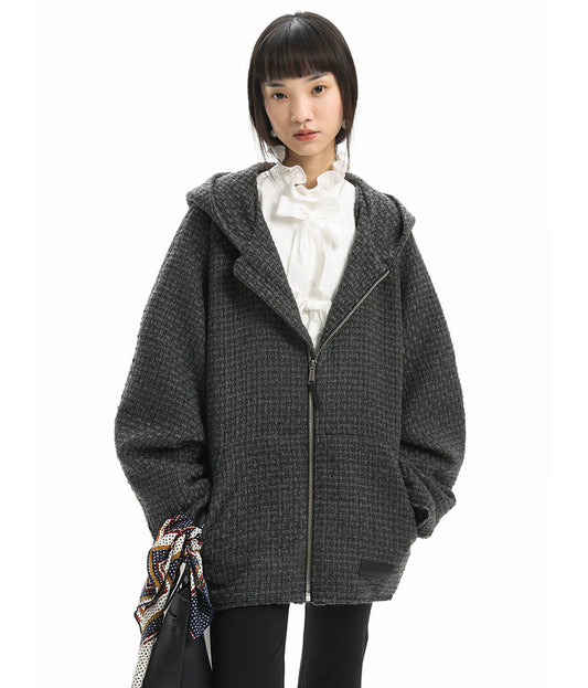 Reversible Checked Pattern 3D Embroidery Lapel Jacket