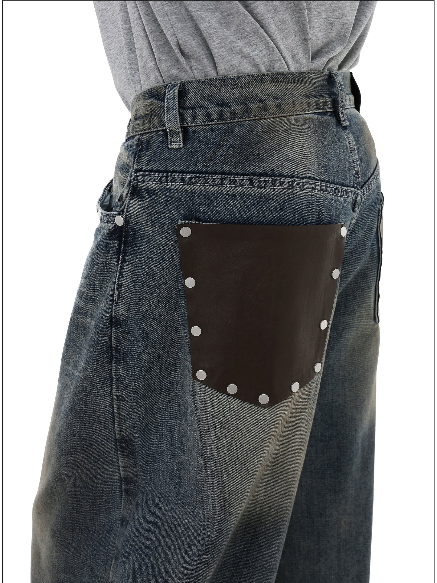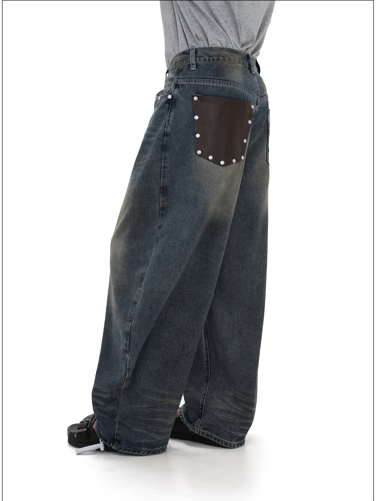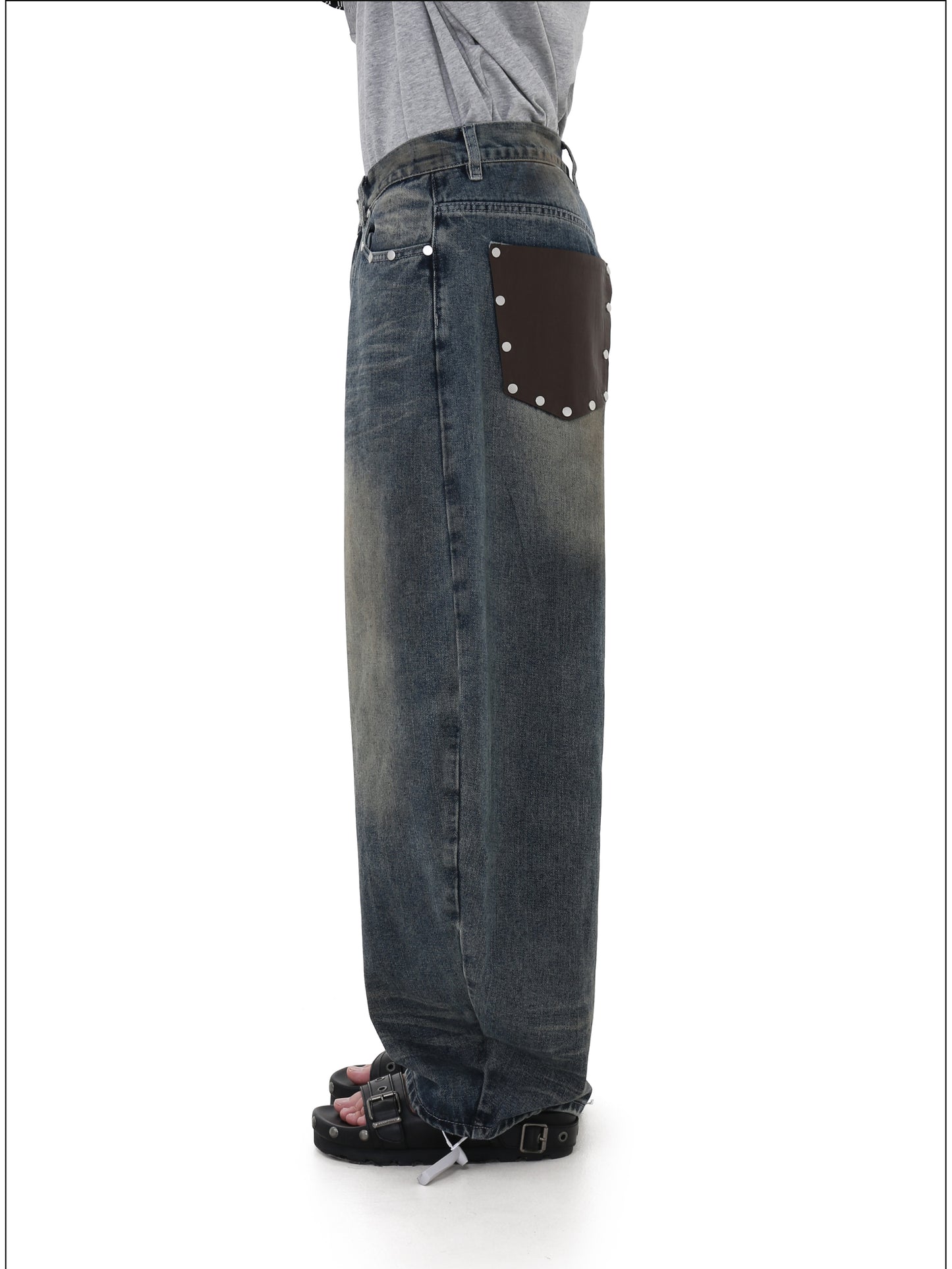 Cowhide pockets Wide leg denim pants