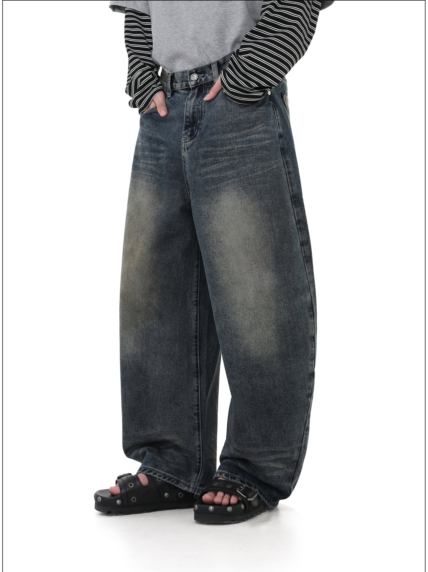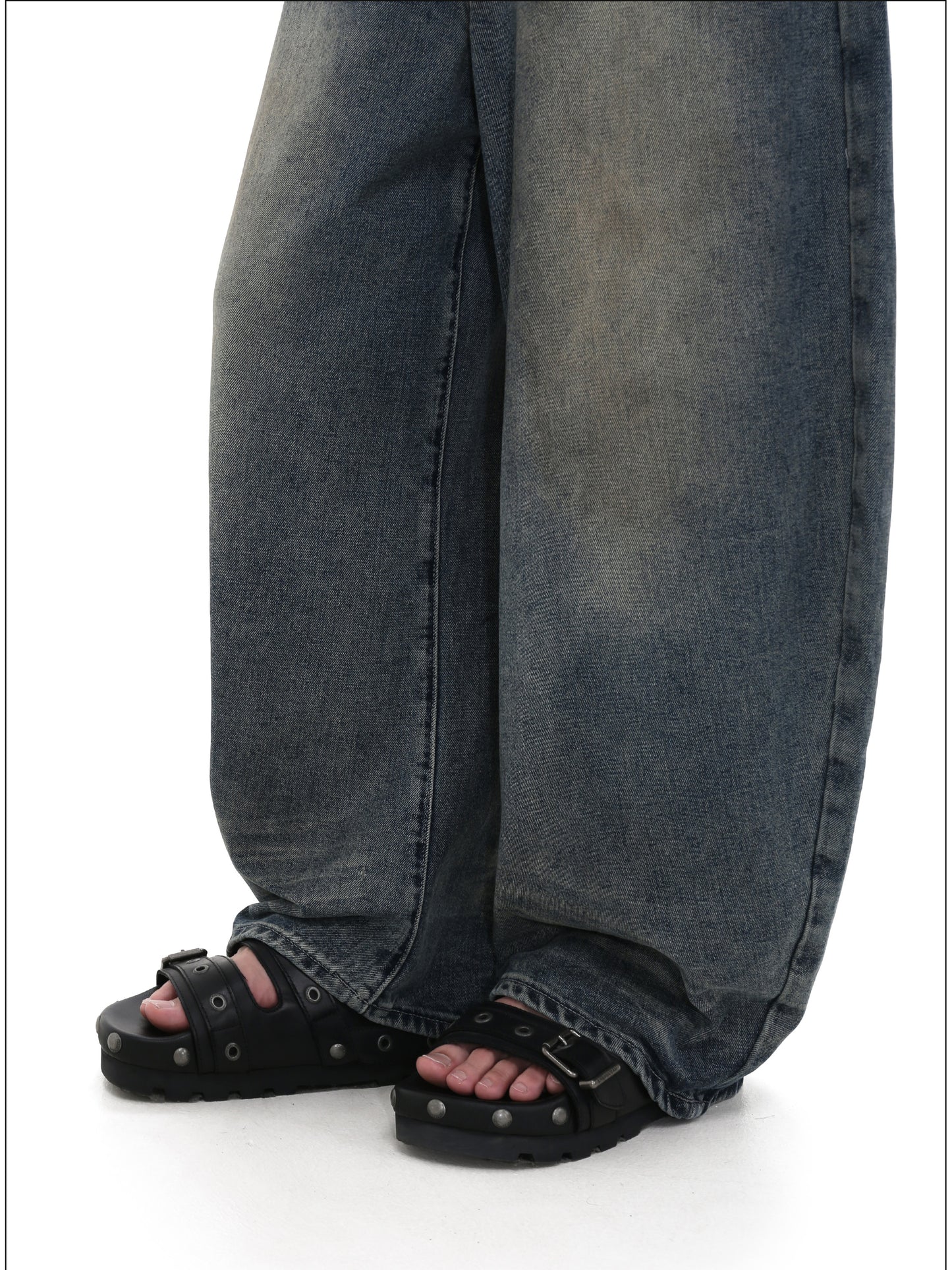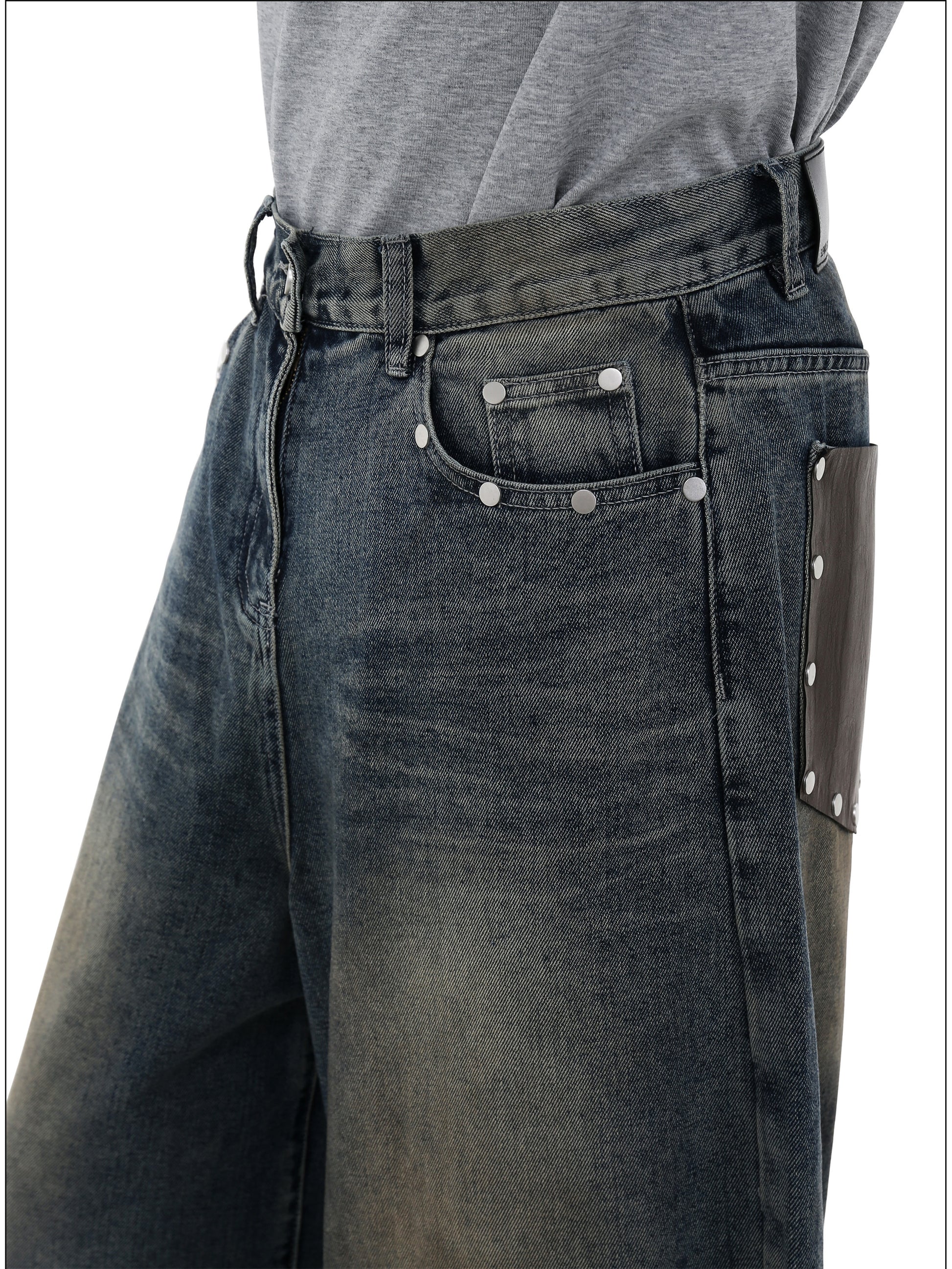 Cowhide pockets Wide leg denim pants
