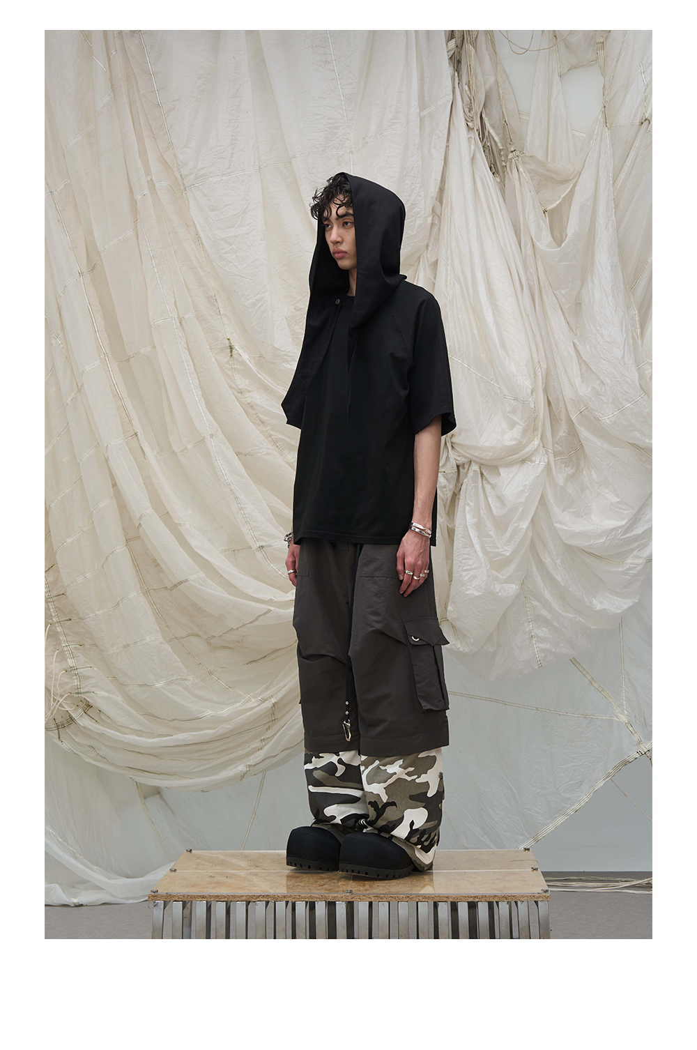 Detachable small hood T-shirt