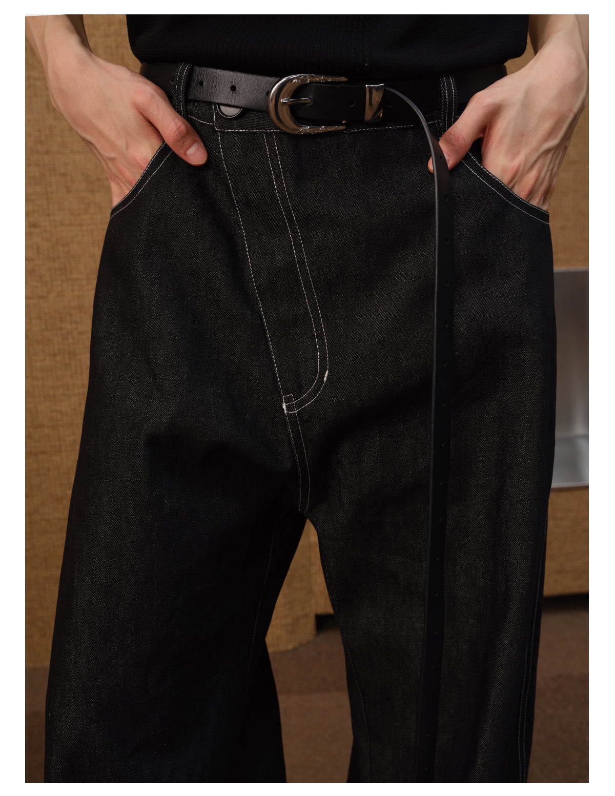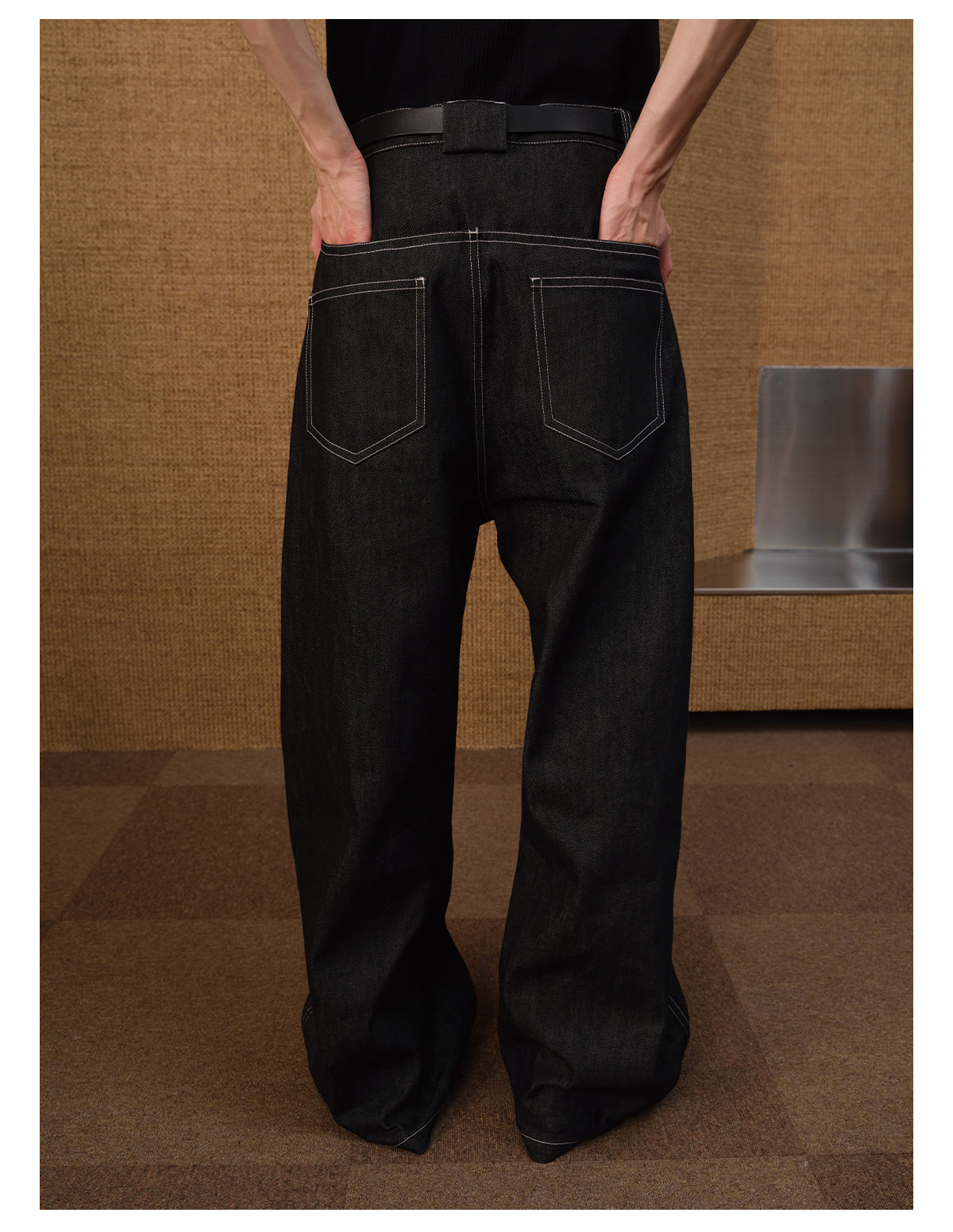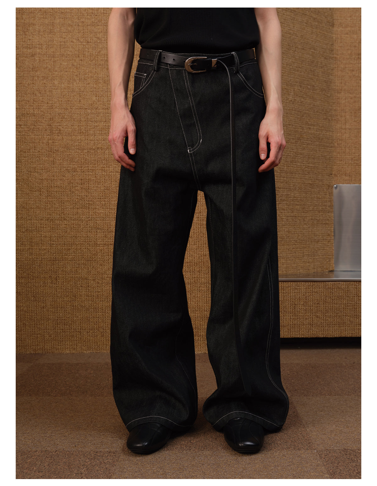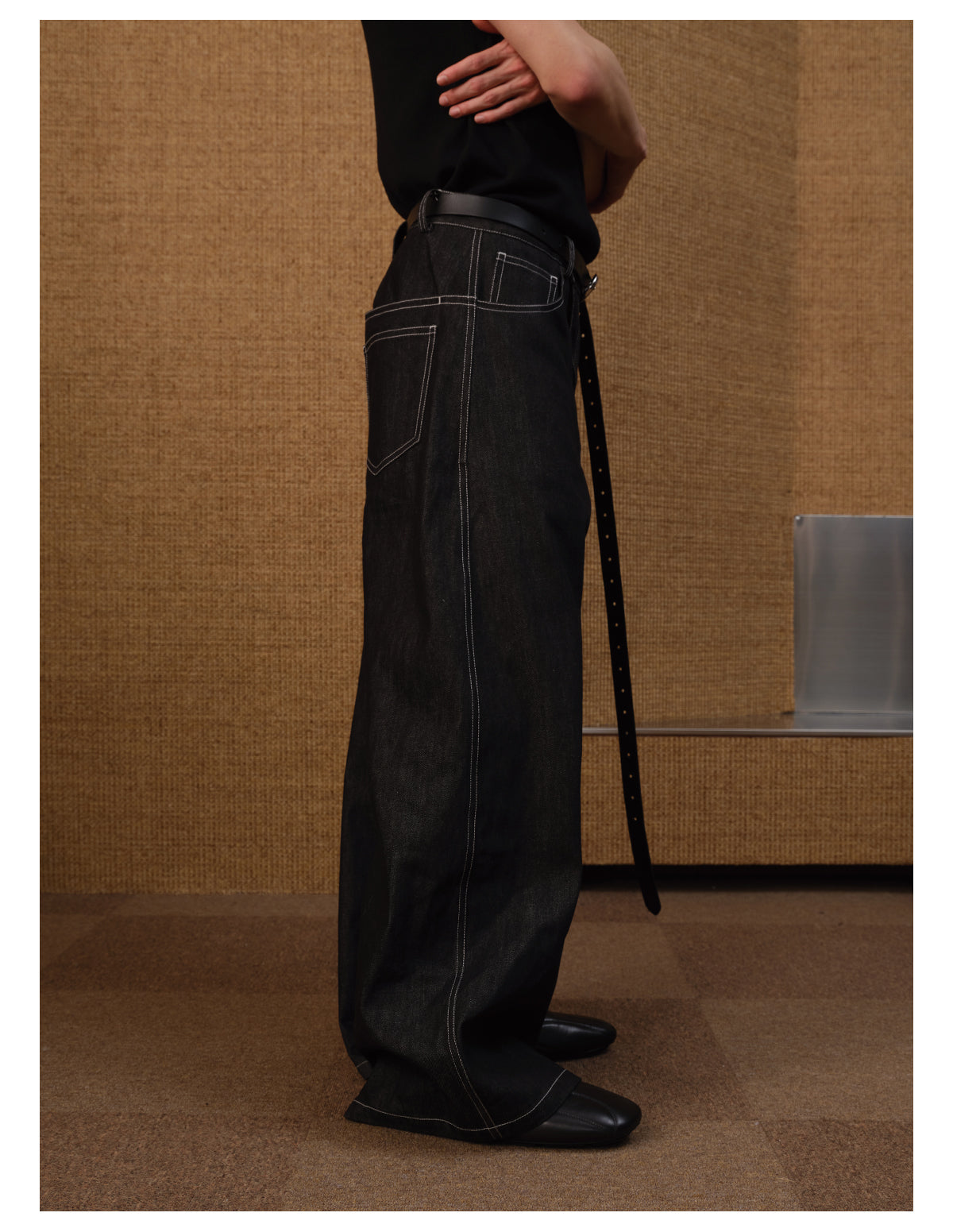 Diagonal placket denim pants