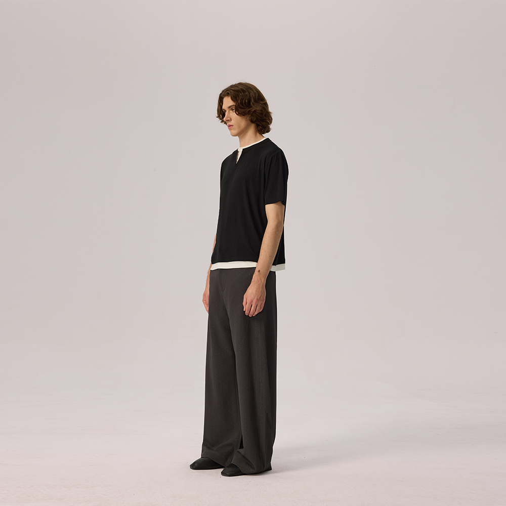Faux two-piece V-neck T-shirt