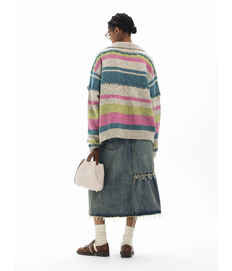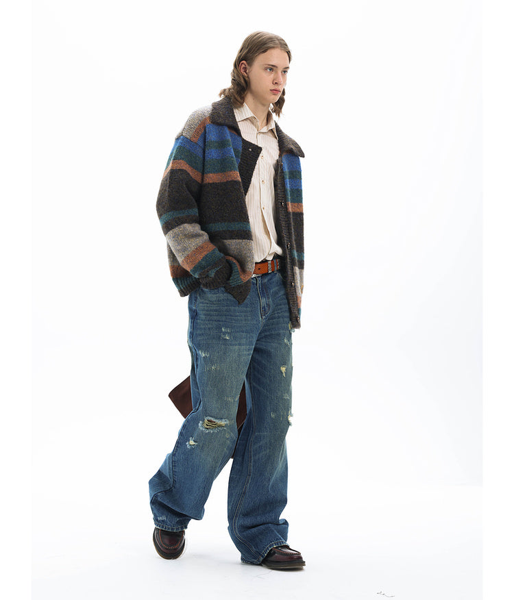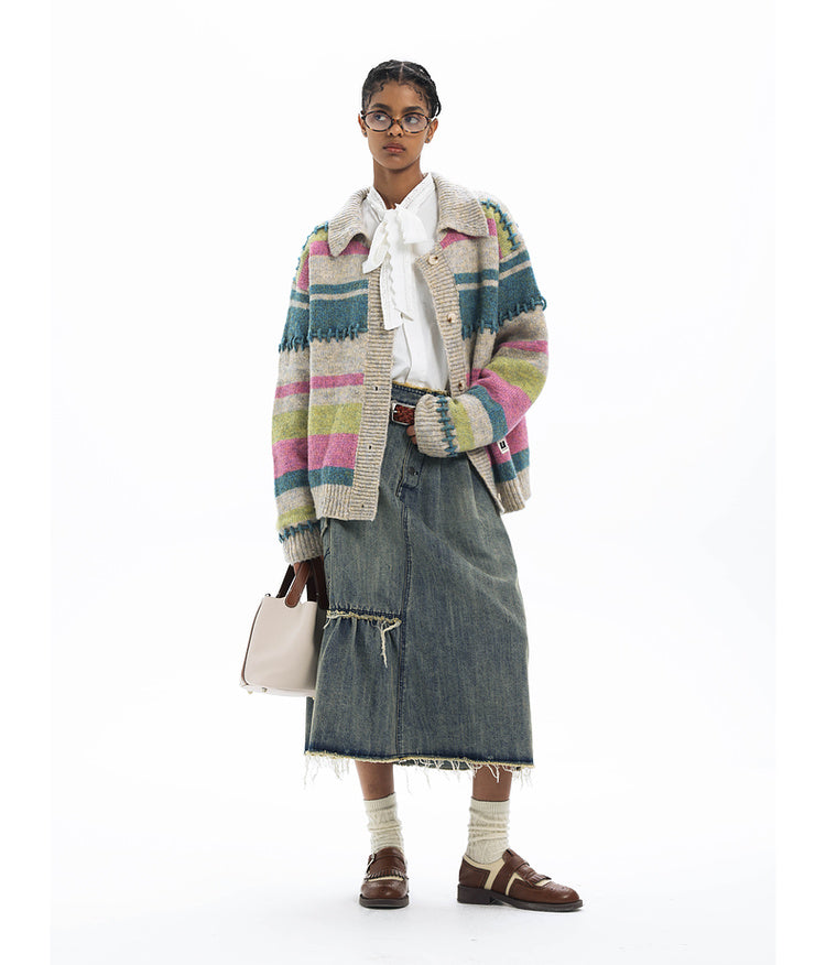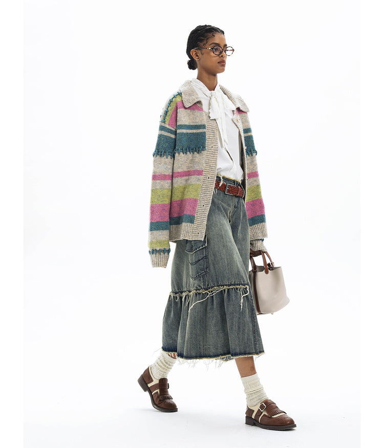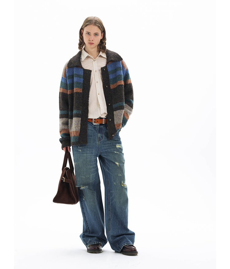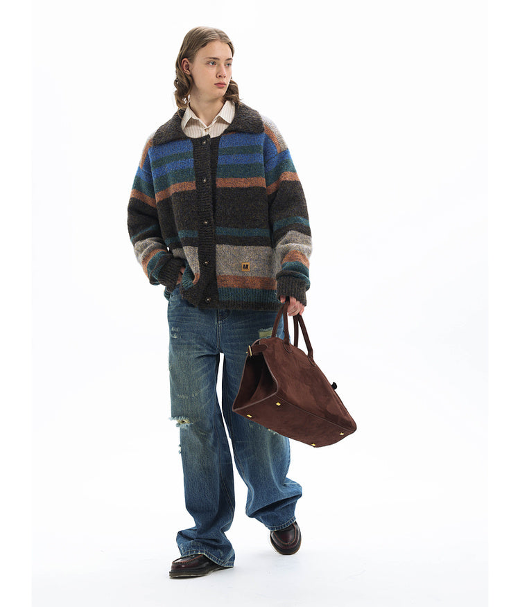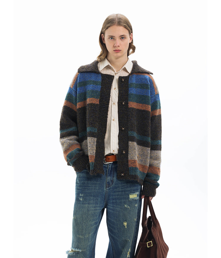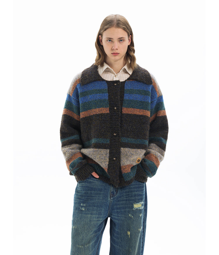Imitation mohair striped cardigan
