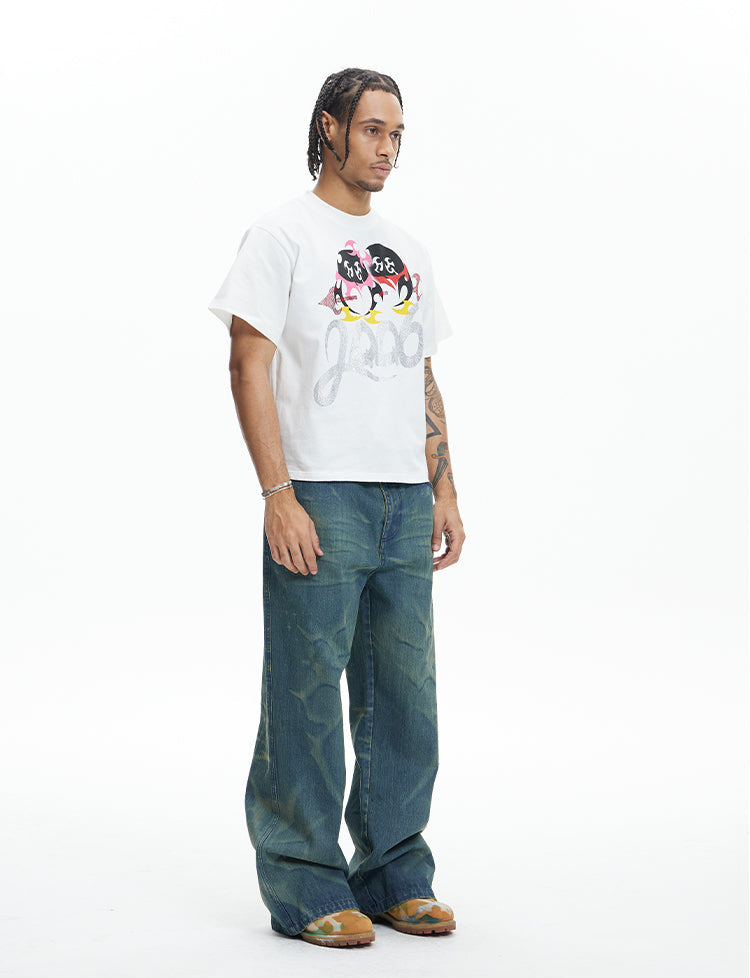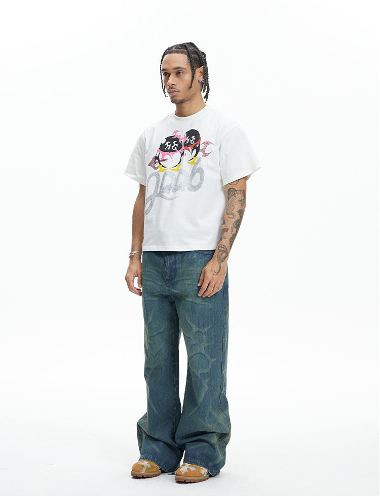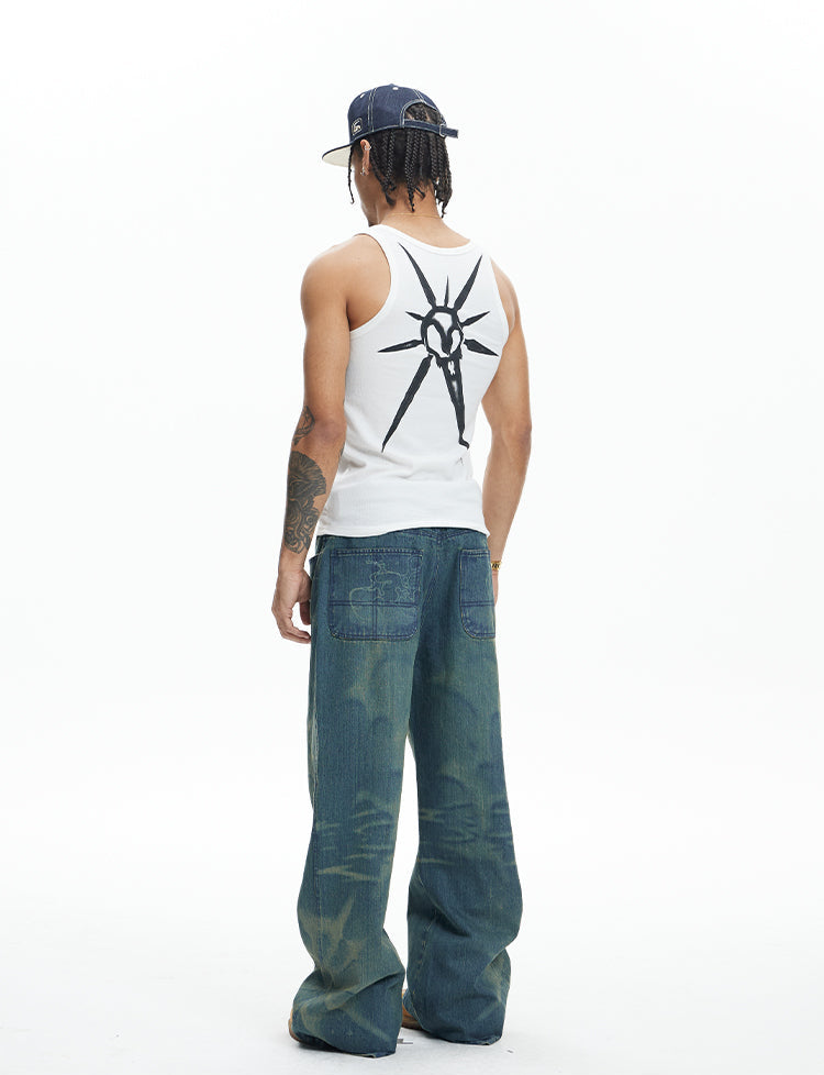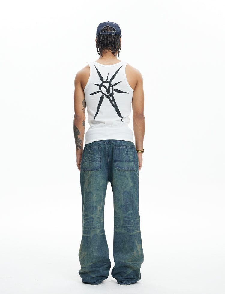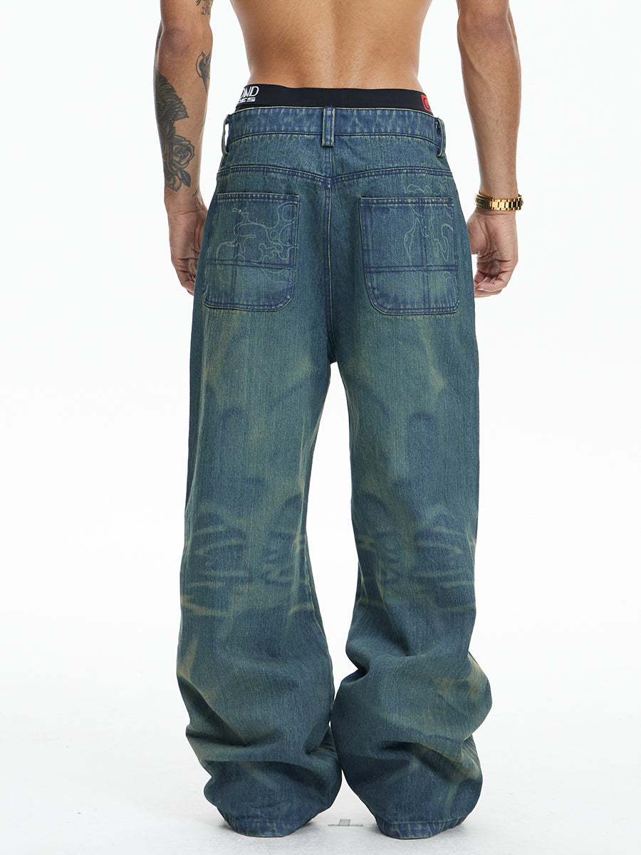 Laser Burnt Washed Jeans
