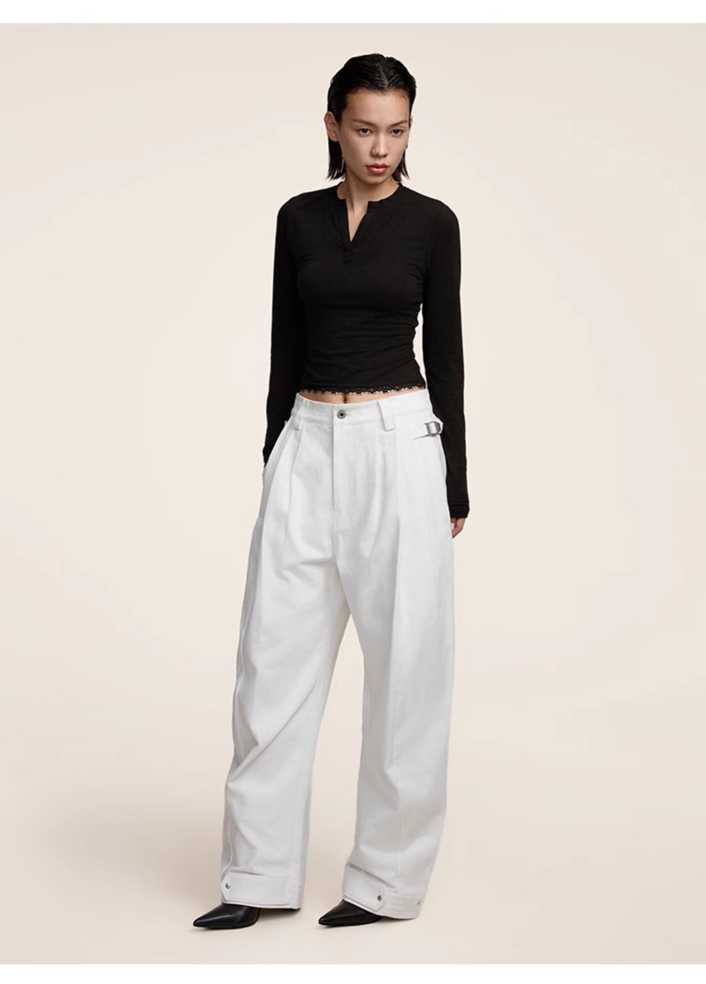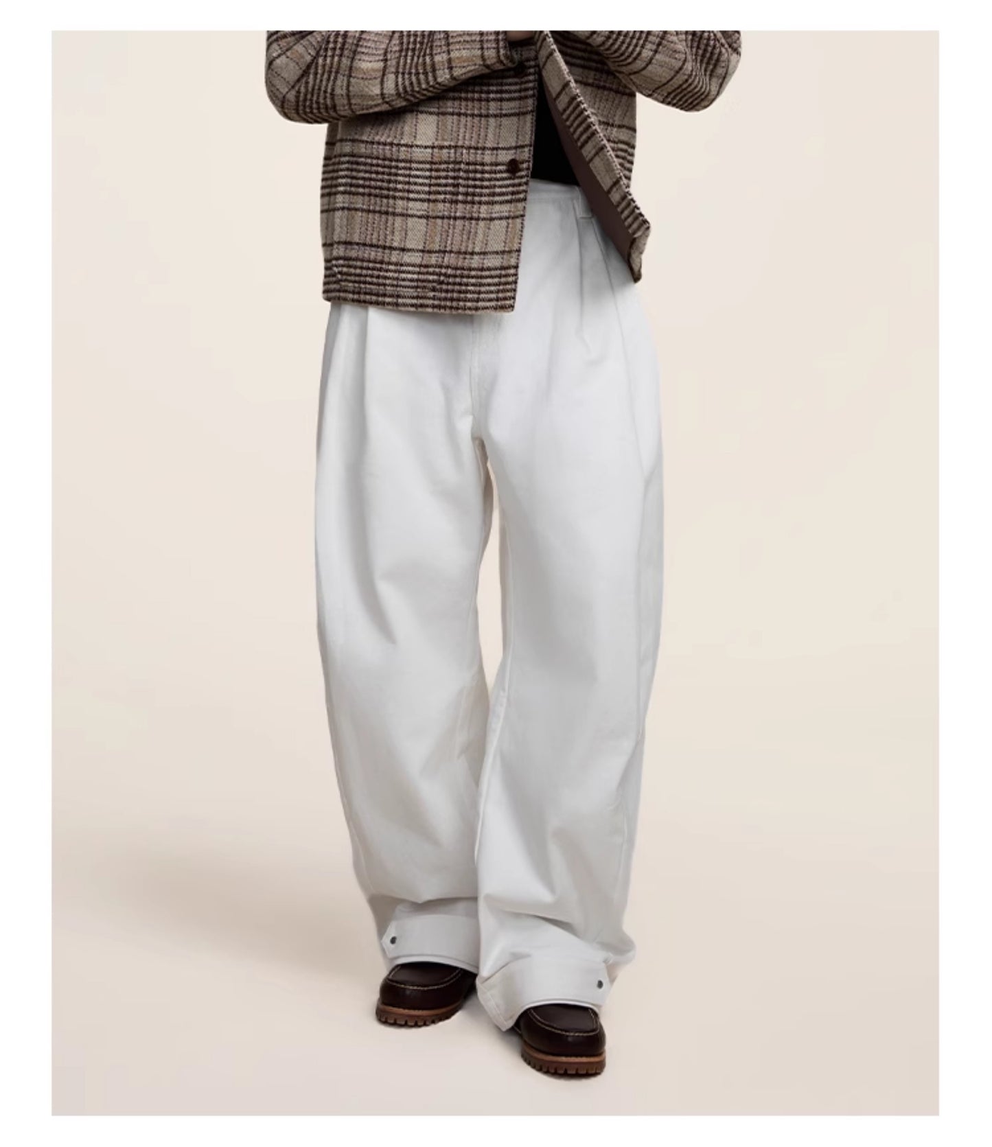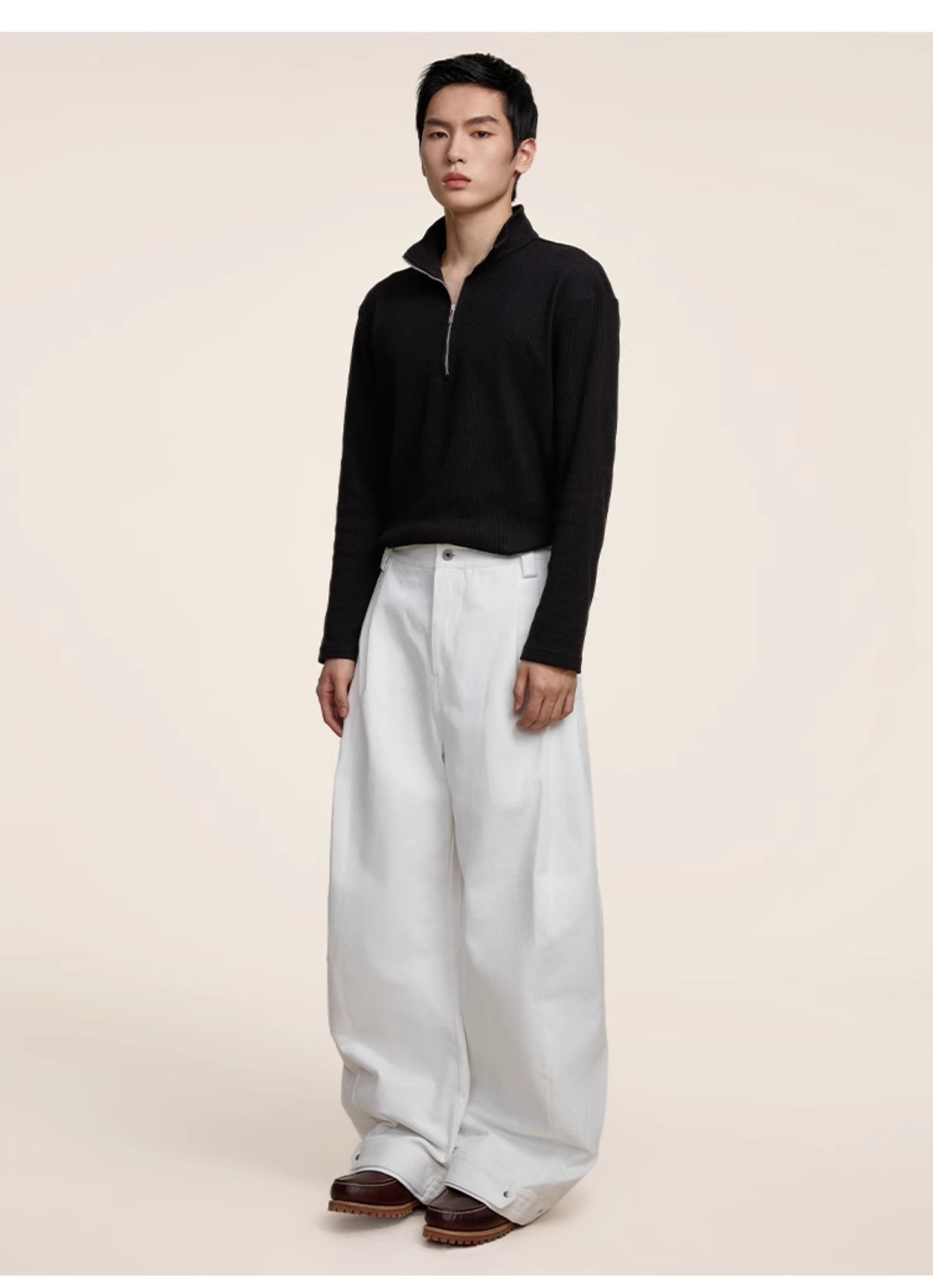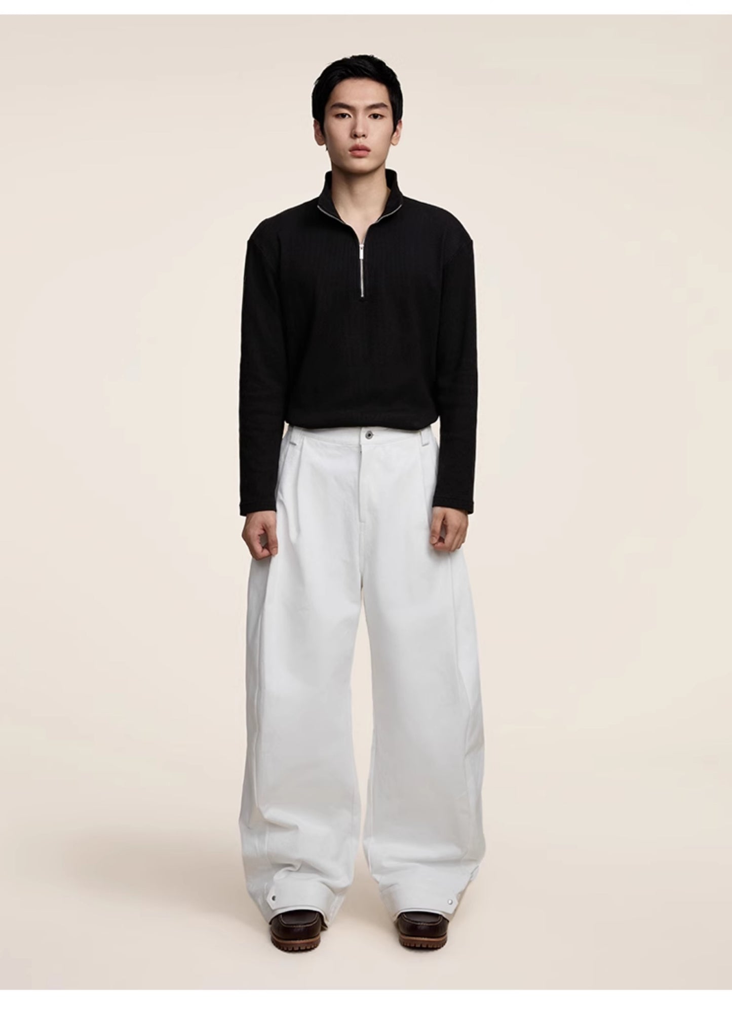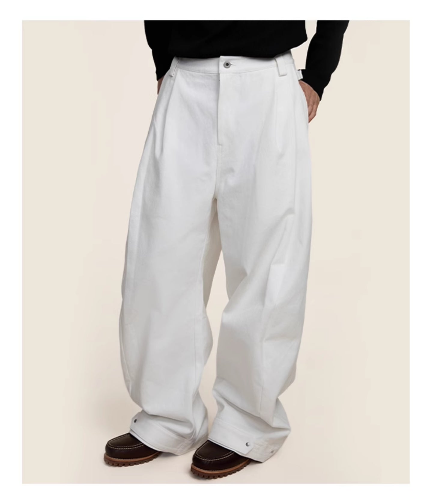 Multi-pleats loose silhouette casual pants