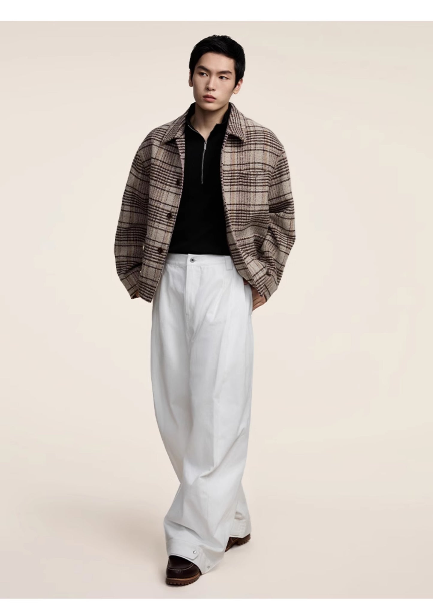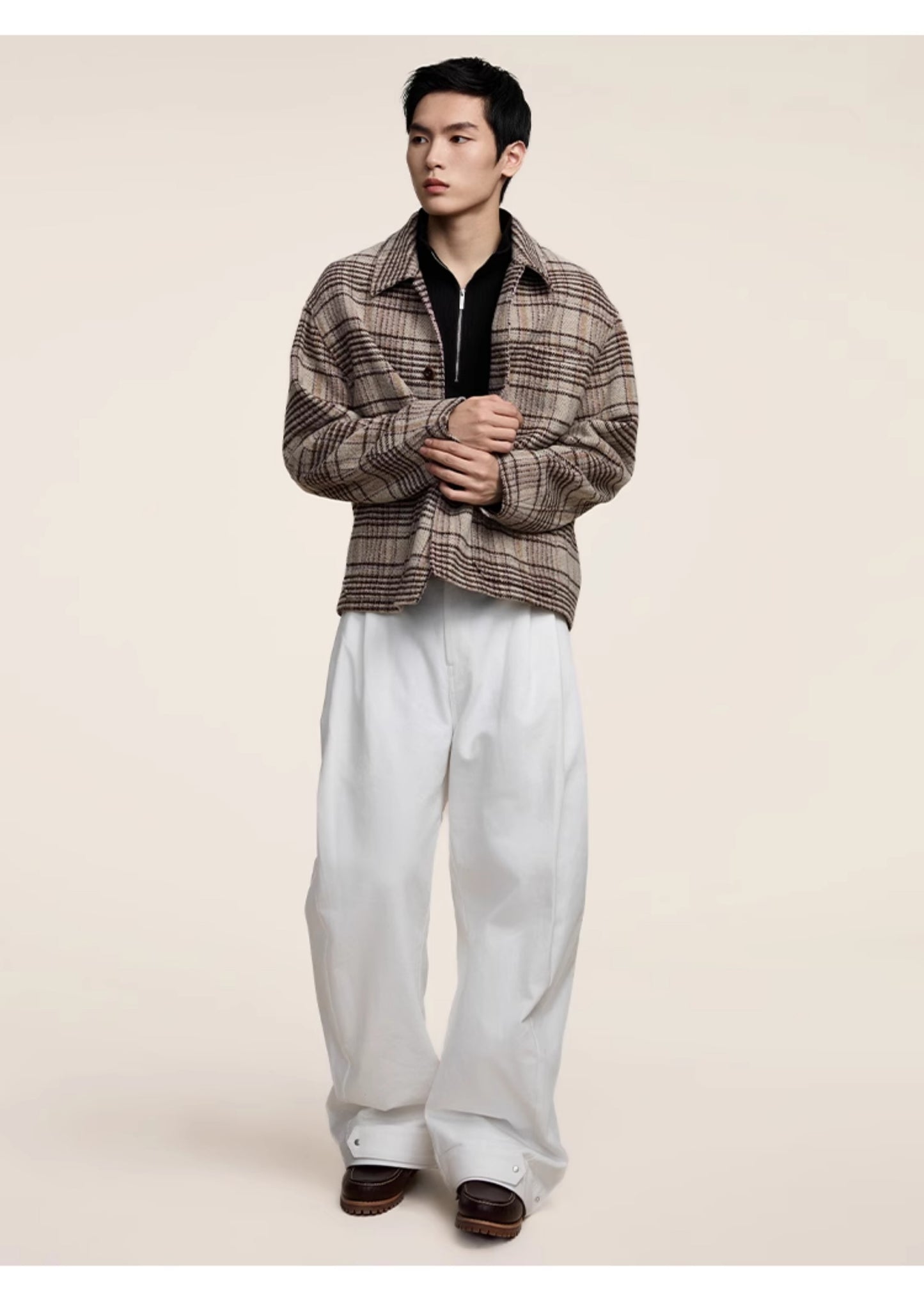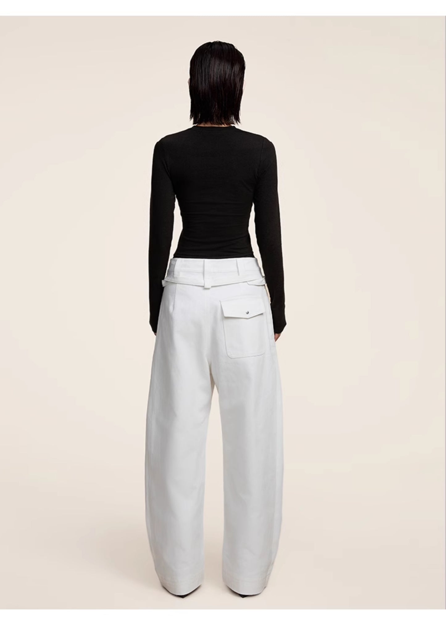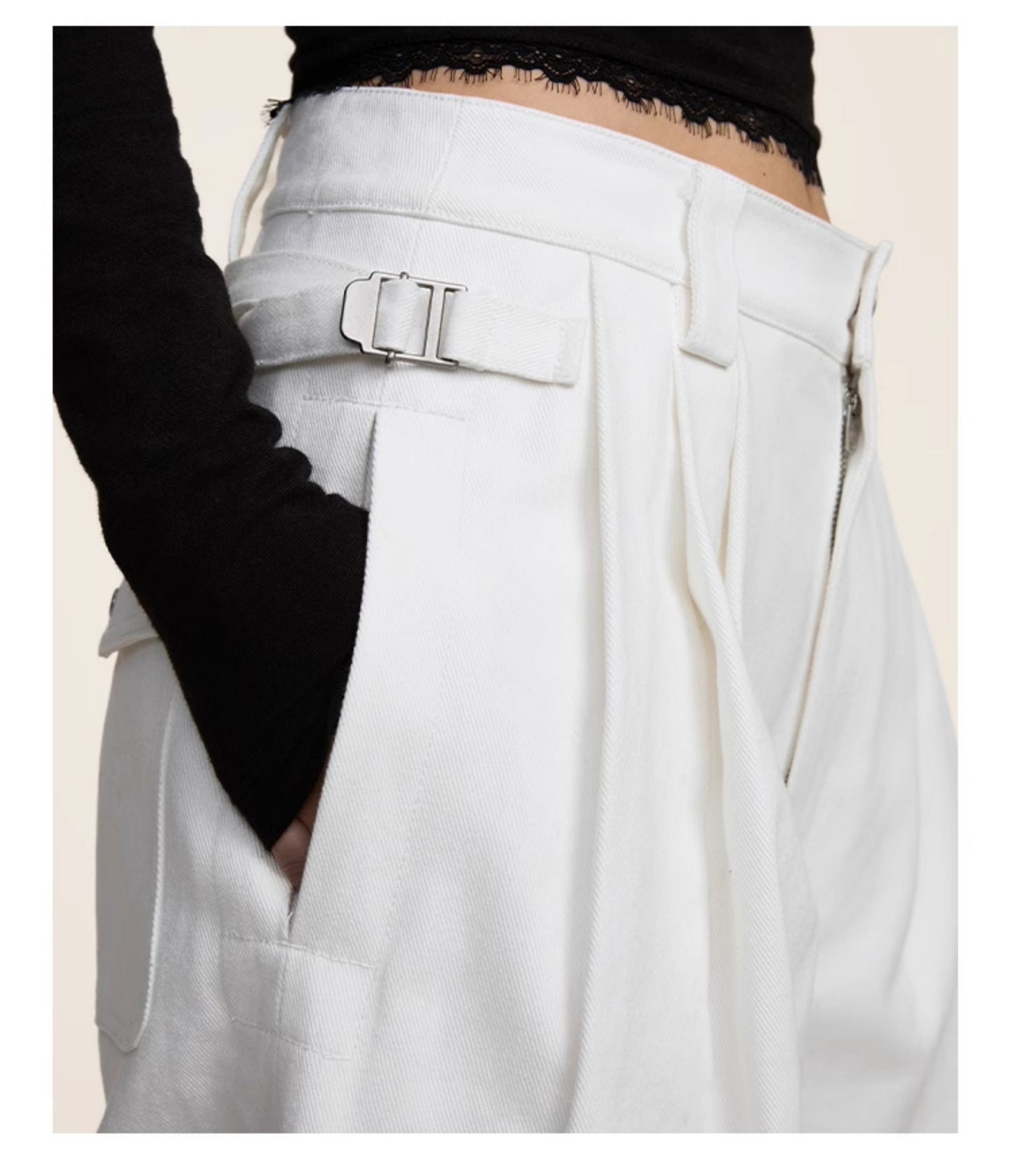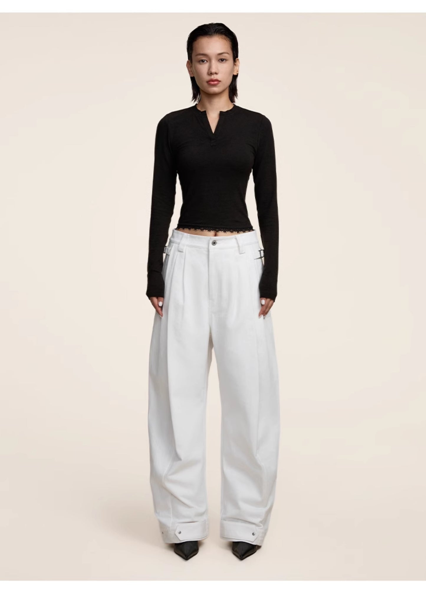 Multi-pleats loose silhouette casual pants
