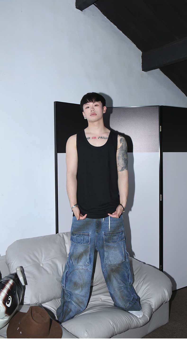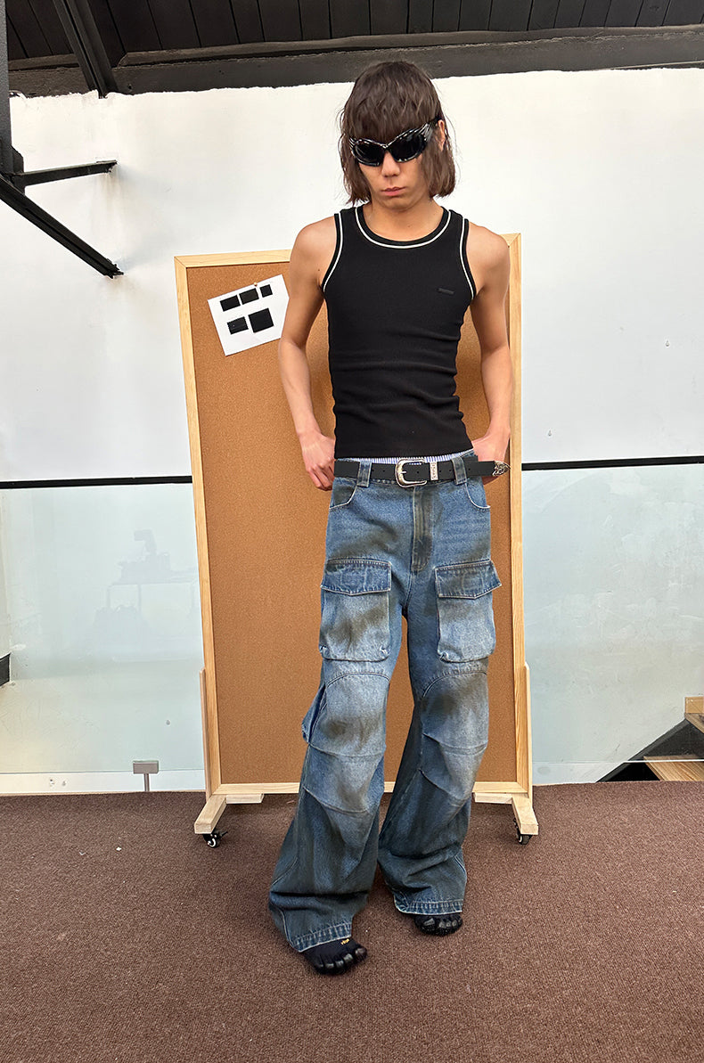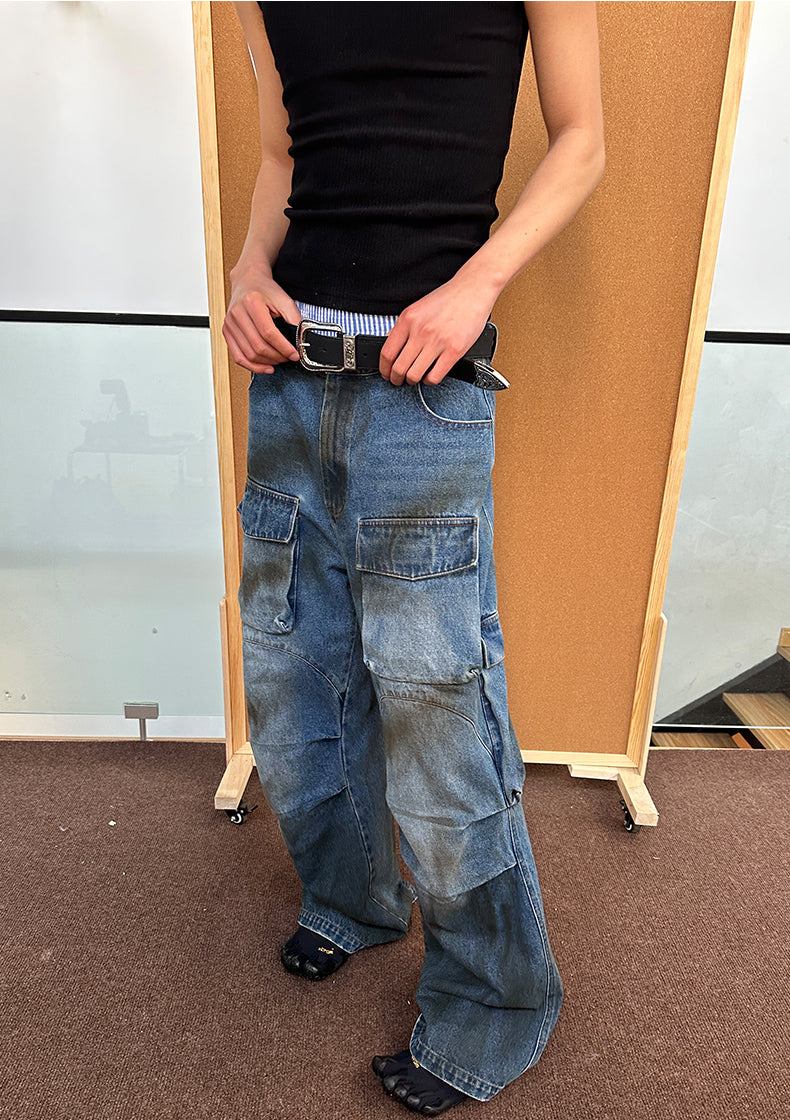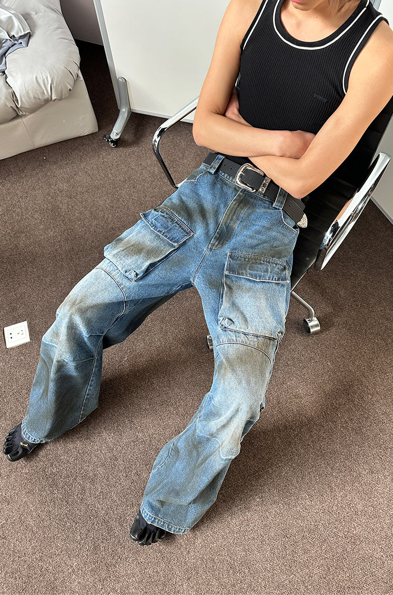 Multi-pocket stain dyed jeans