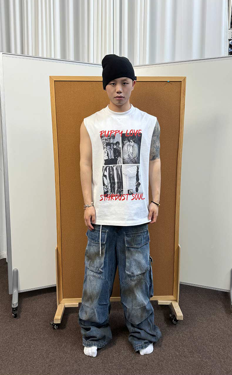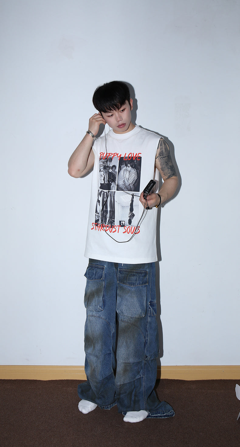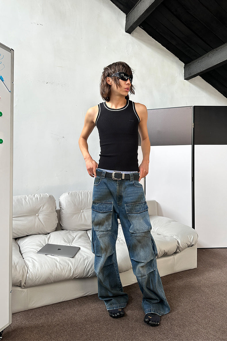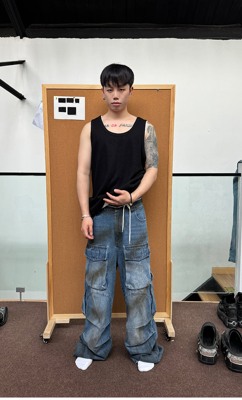 Multi-pocket stain dyed jeans