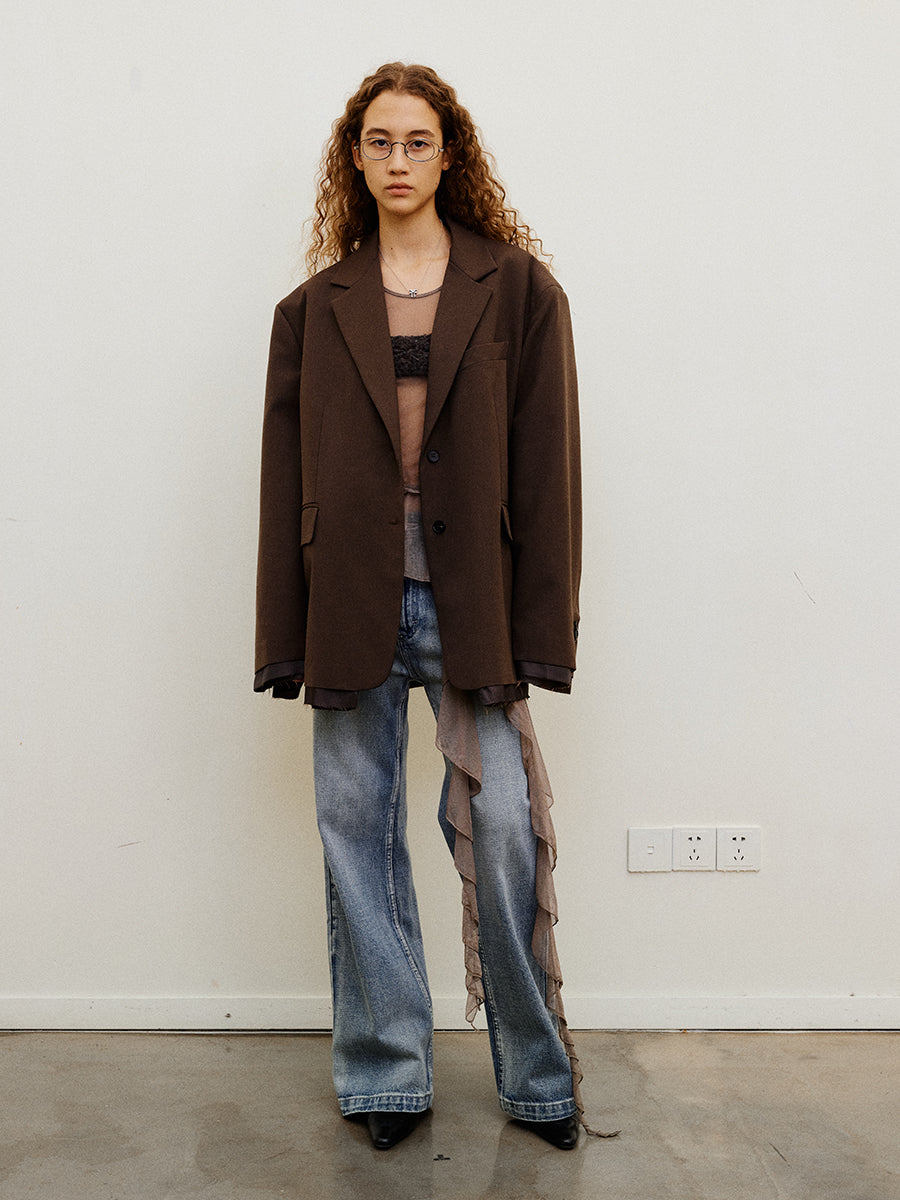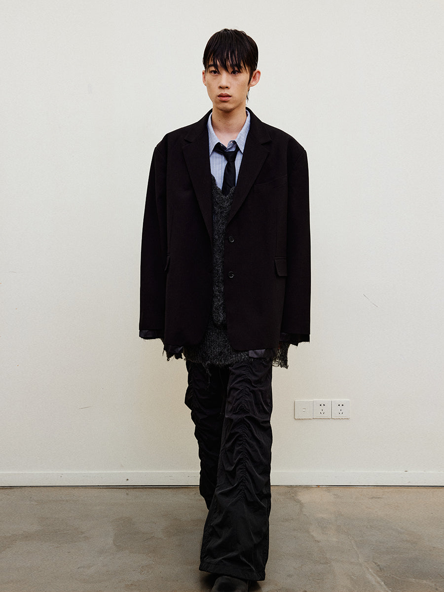 Oversized Raw Edge Layered Jacket