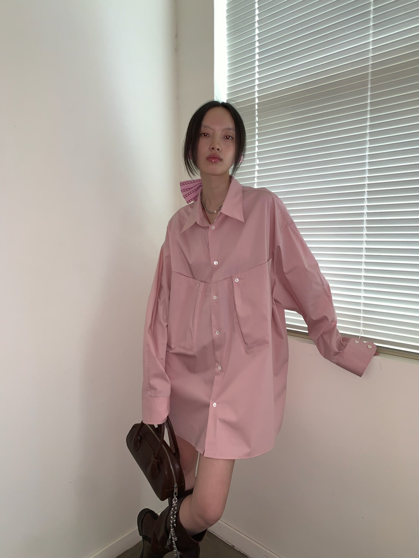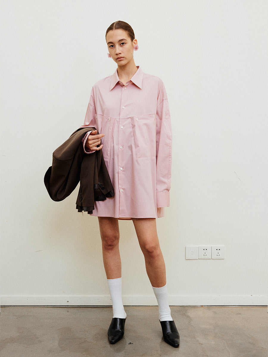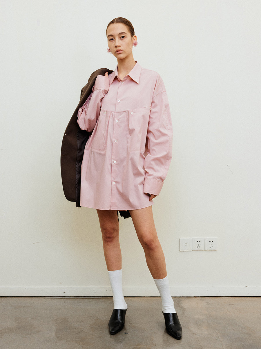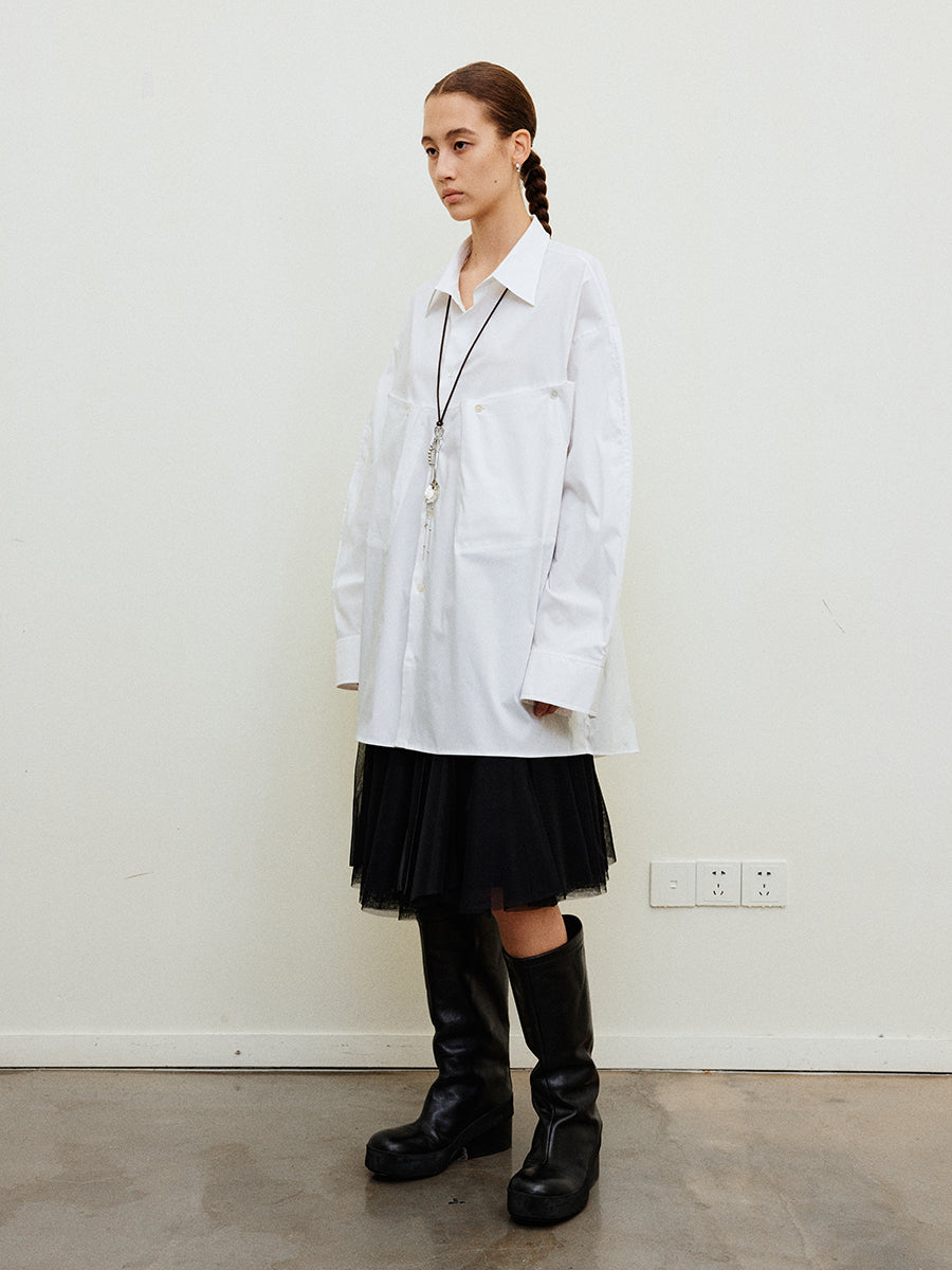 Solid color large pocket shirt