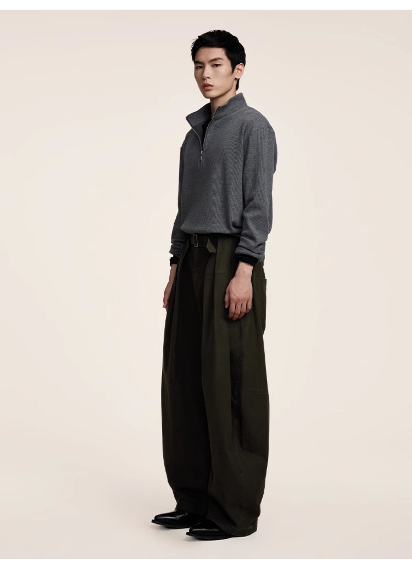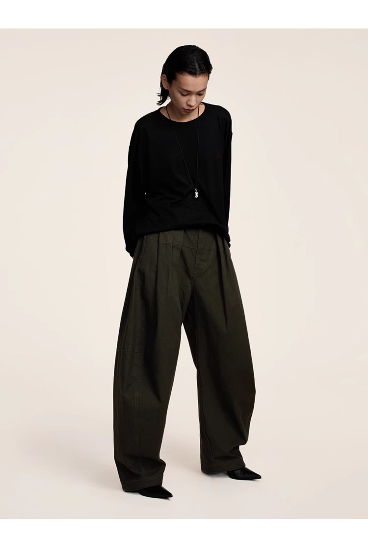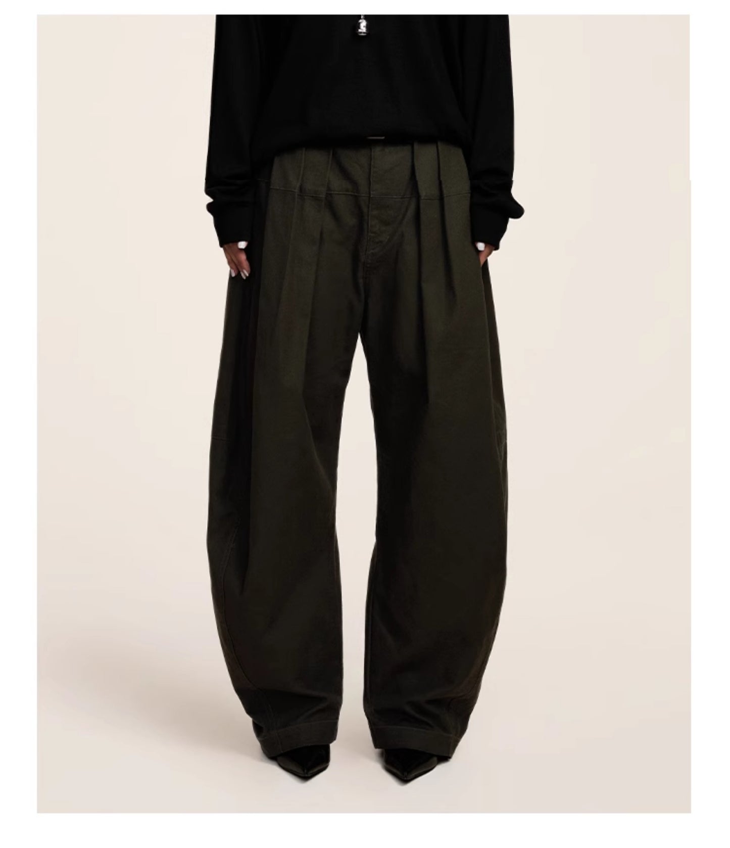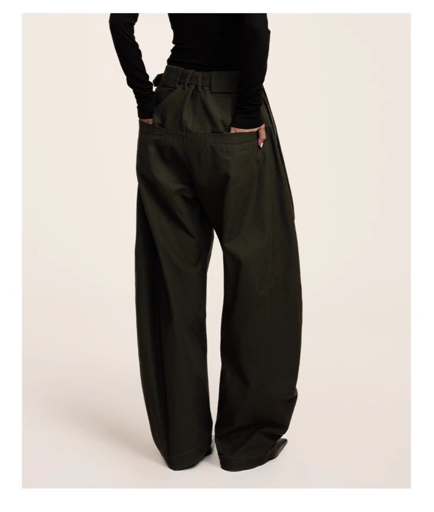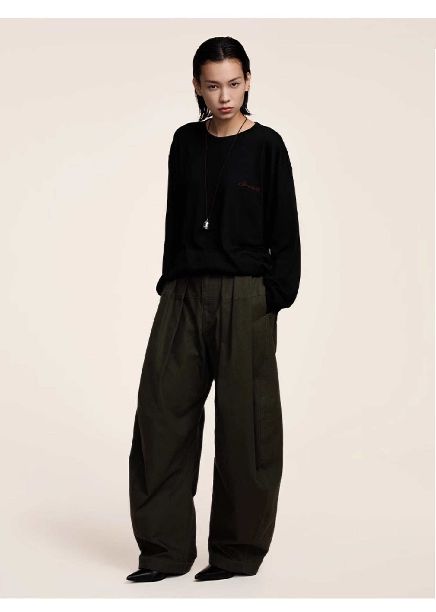 Three-dimensional scimitar silhouette casual pants