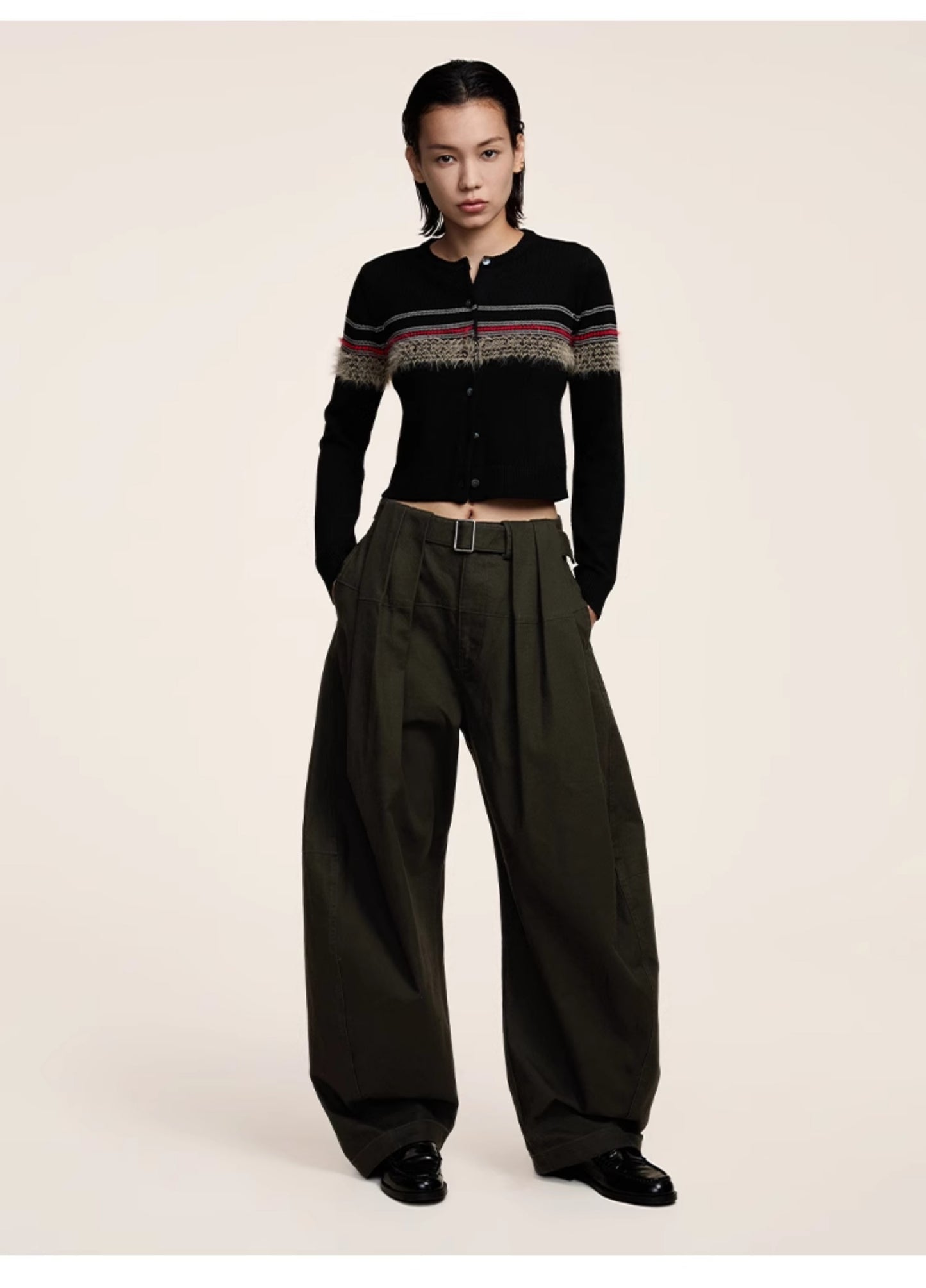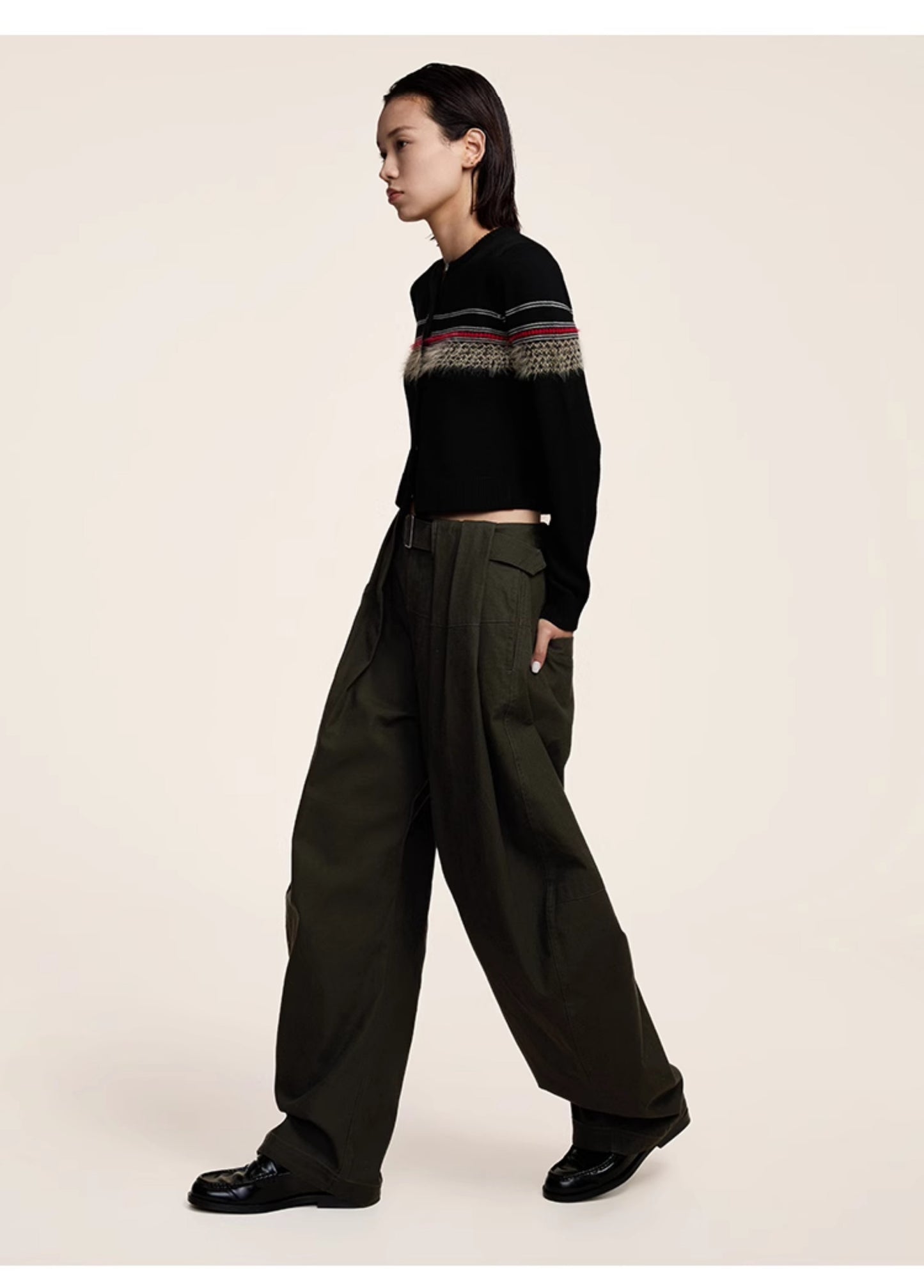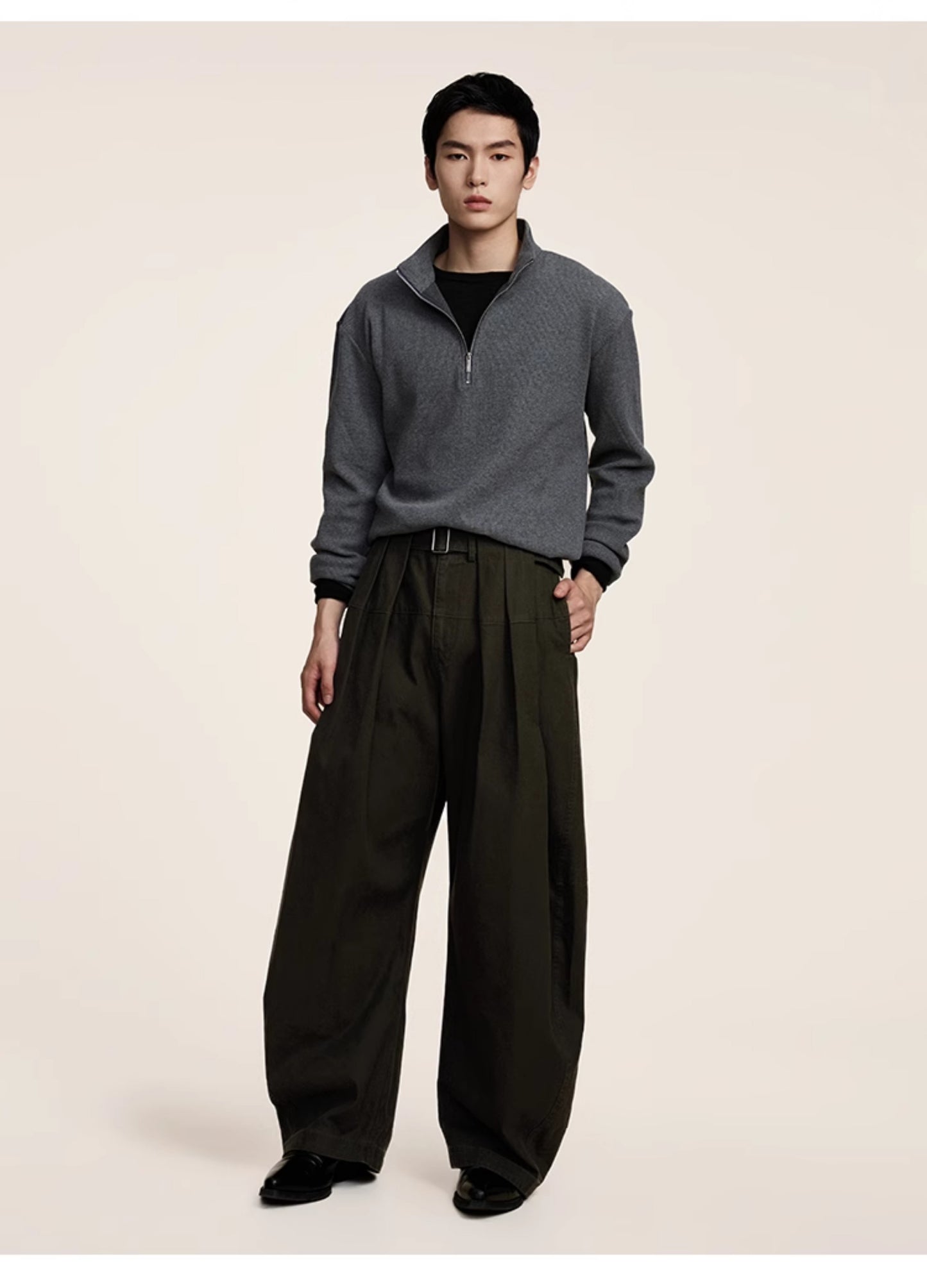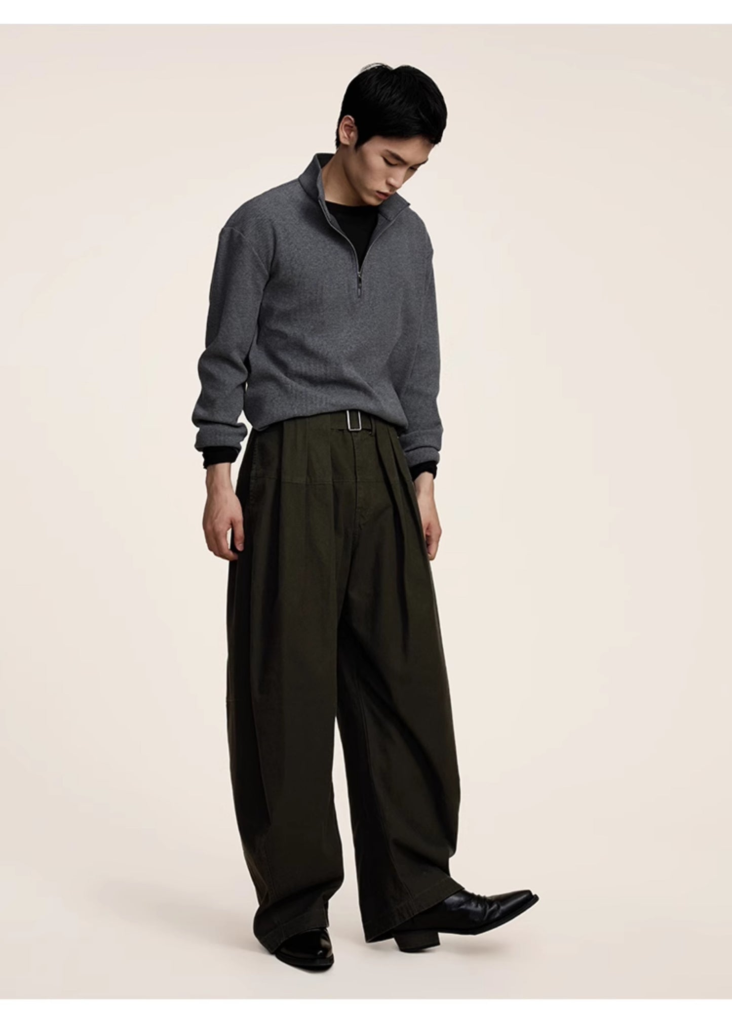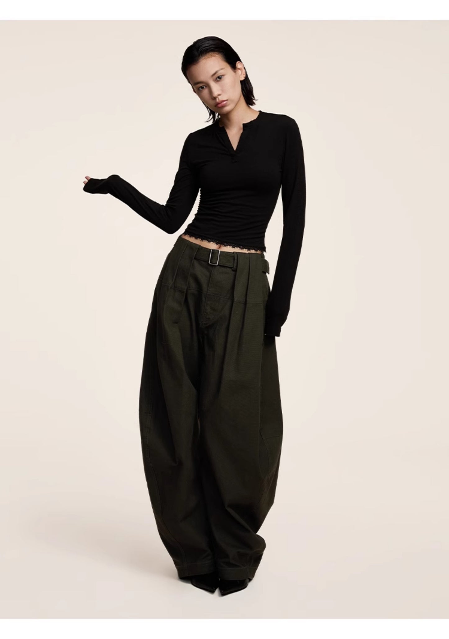 Three-dimensional scimitar silhouette casual pants