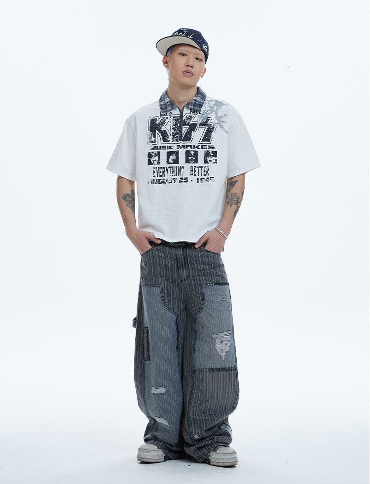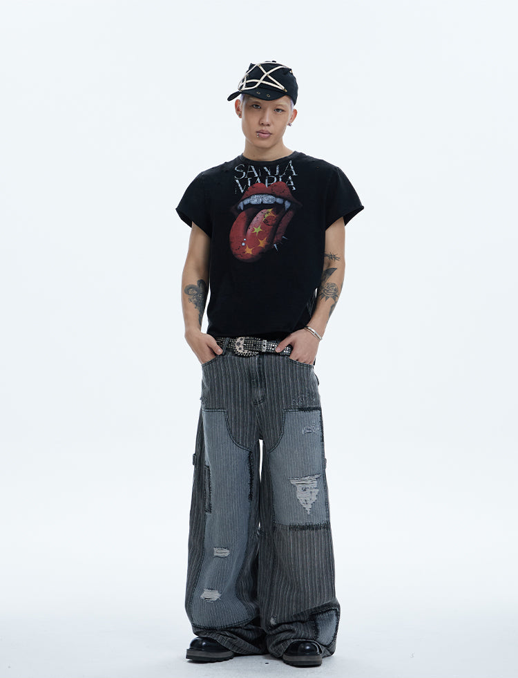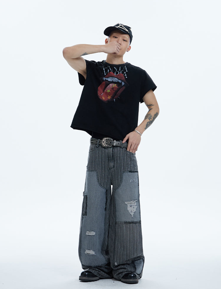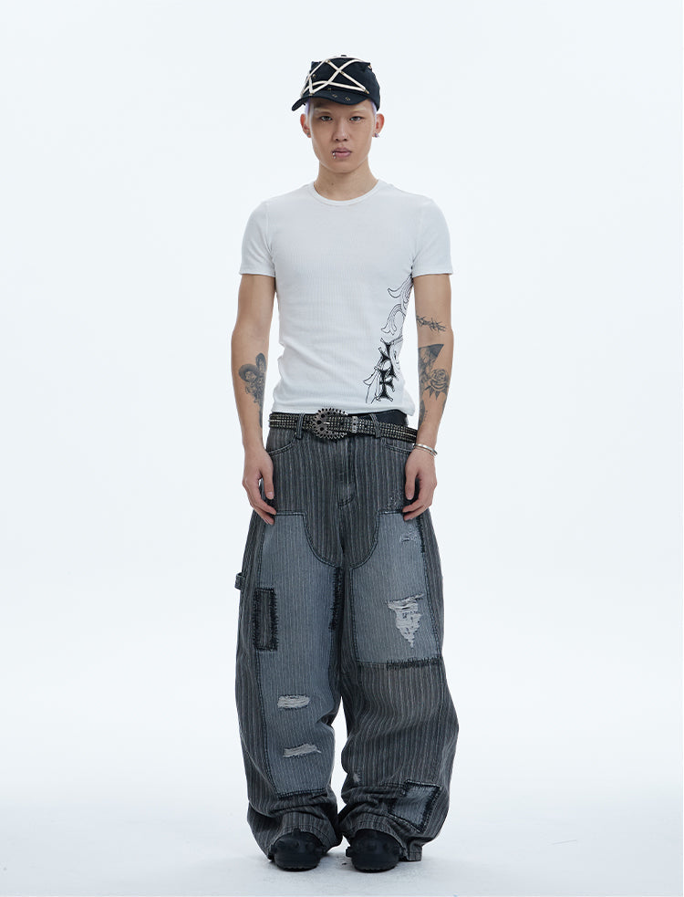 Washed Patchwork Baggy Pants