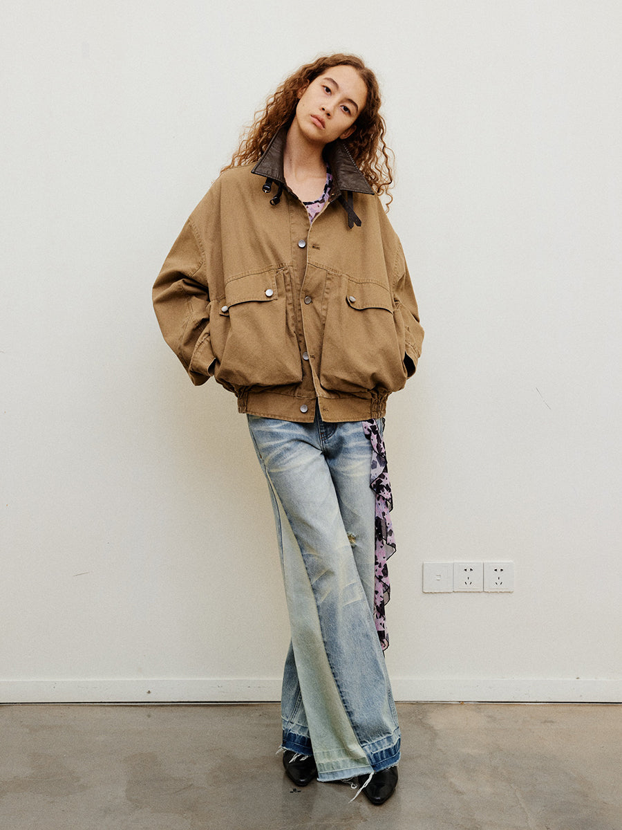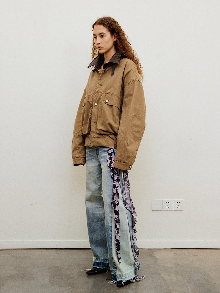 Work jacket with removable shoulder pads